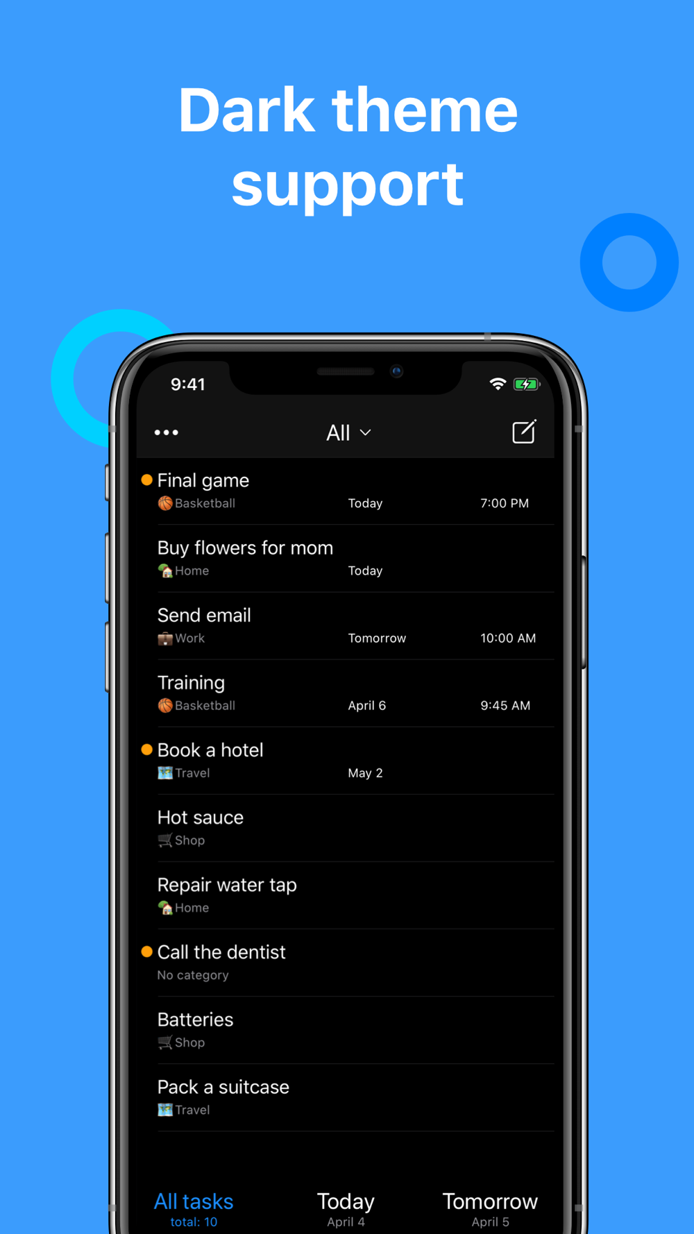- Sort tasks