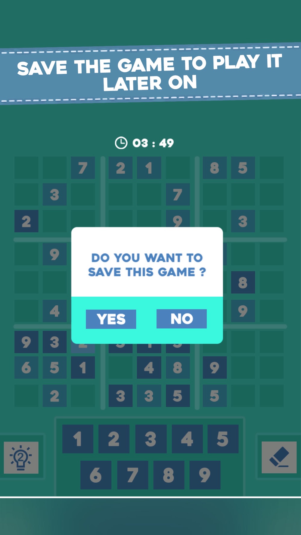 - Save the Game to Play it Later on