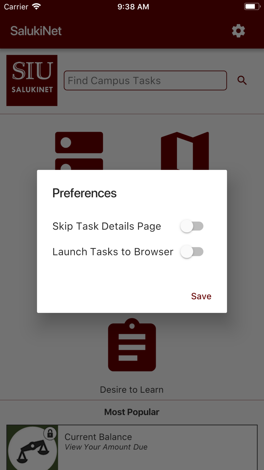Southern Illinois University Carbondale -SalukiNet student portal application.