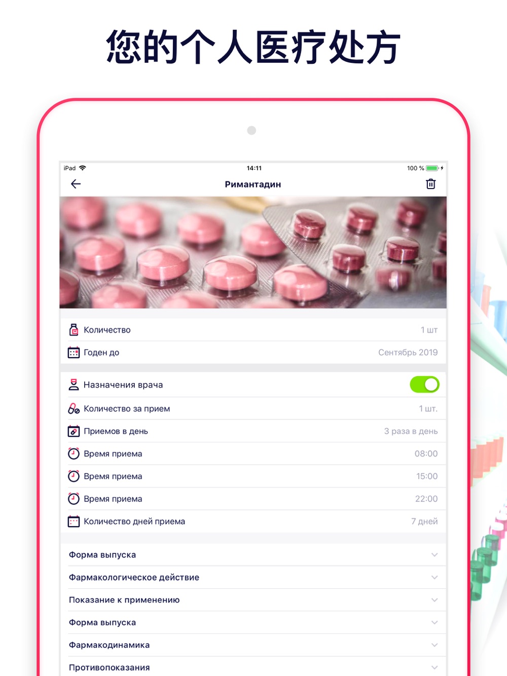 您可以随时查看药物的有效期,并获得有关即将到期的药物的通知,以便重新补充药物。