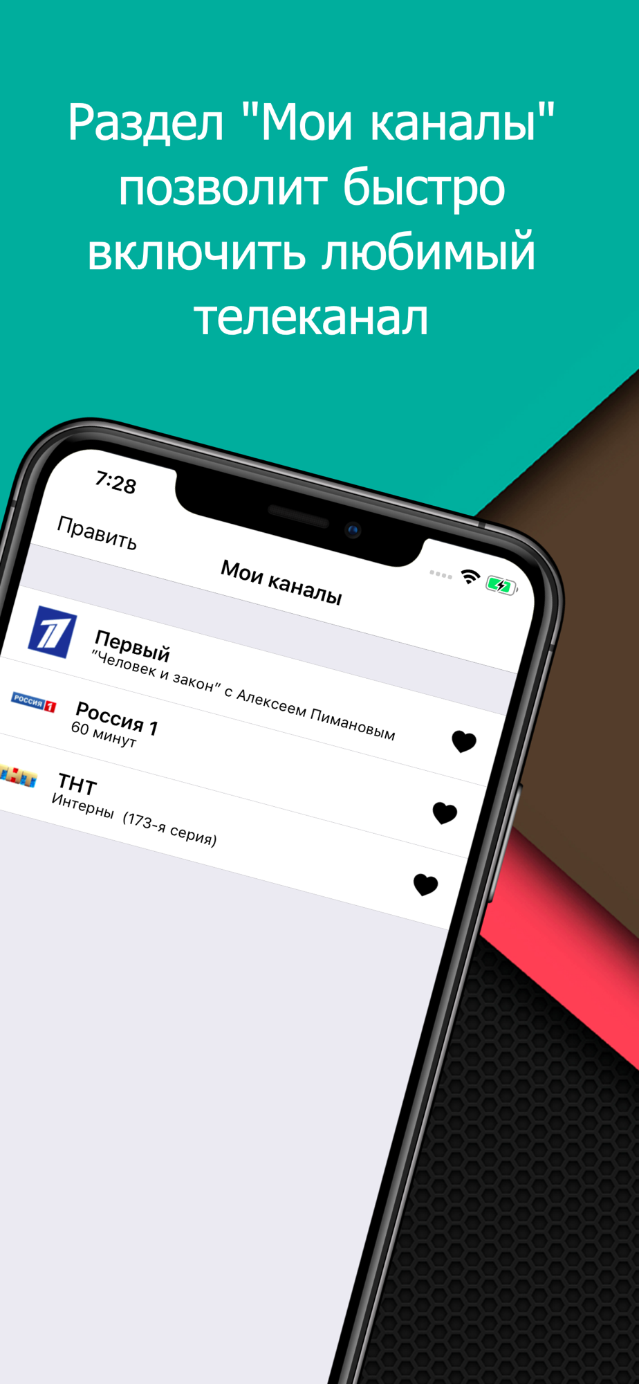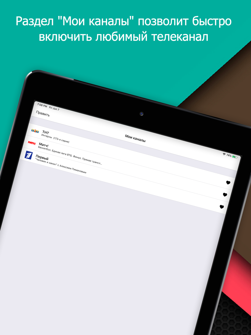 • добавление каналов в любимый список;