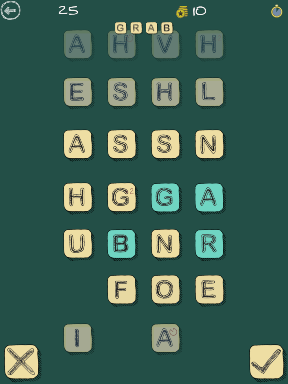 find as many words as you can within the time limit in Grid mode or the ever-changing Drop mode; or catch the letters as they pass in Shower mode.