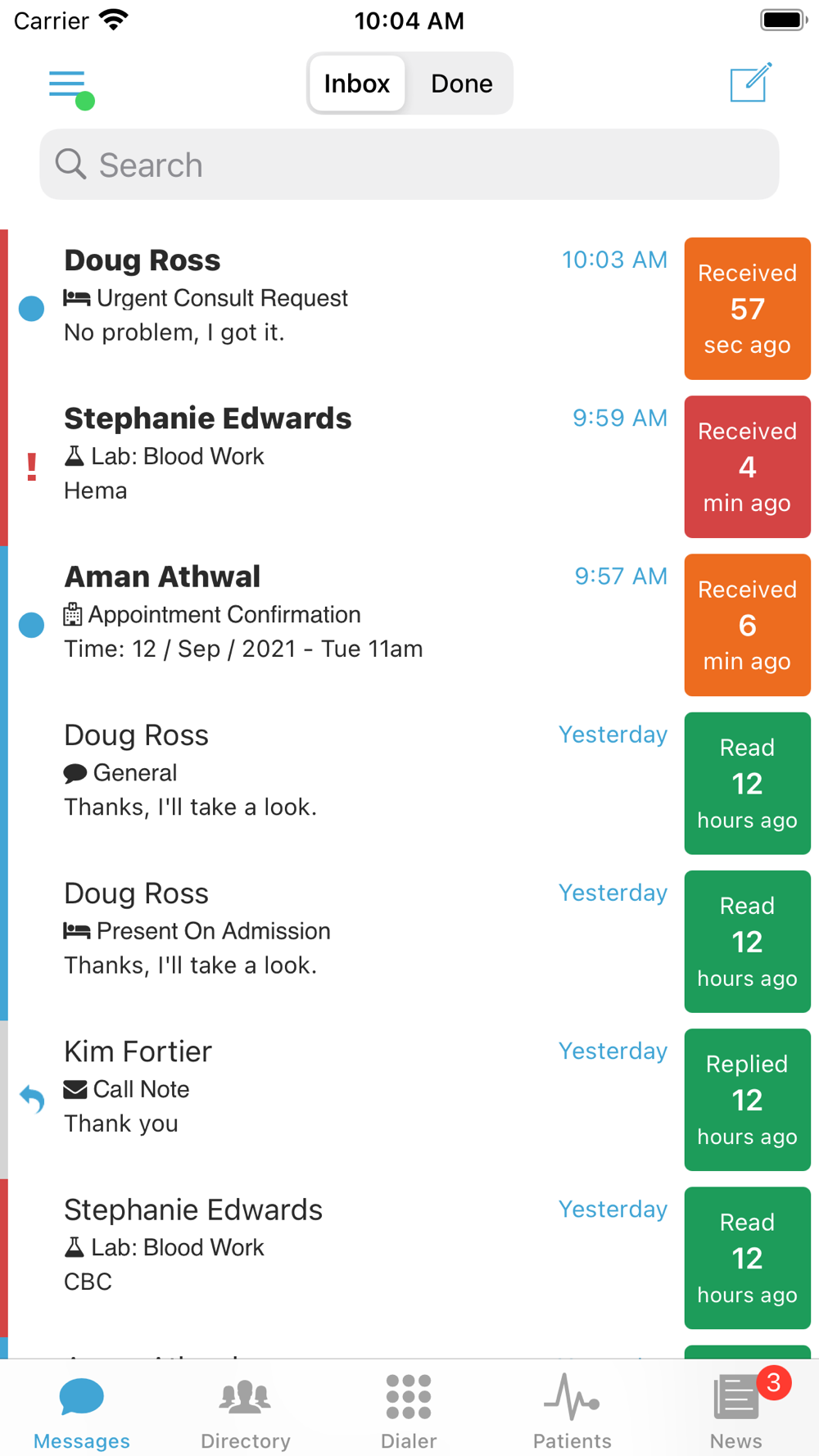 • Unified Communications: Our mobile applications allow for real-time texting and voice communication between clinicians. Multimedia messaging with photos, voice, and attachments are supported as are the ability to record and deliver voicemails when clinicians are busy with patients.
