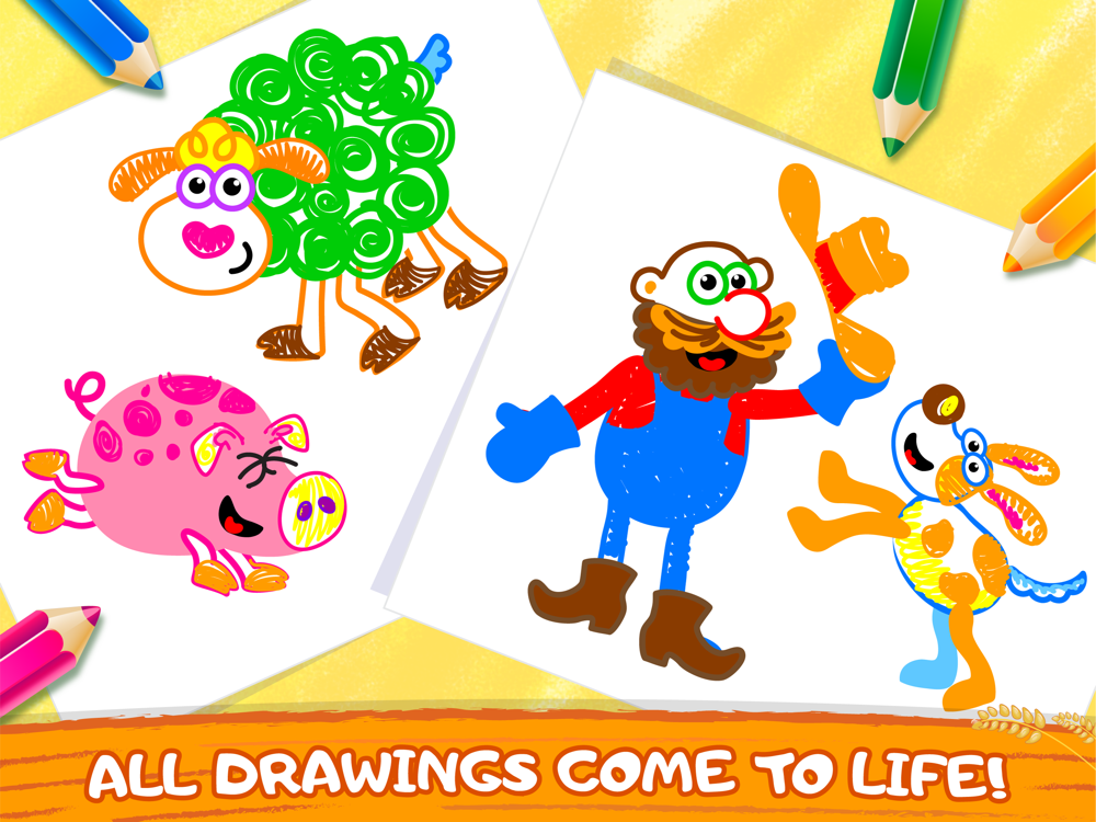 Draw these funny farm animals from Old MacDonald's farm, and they will begin moving right under your fingers! They can't wait to start dancing!