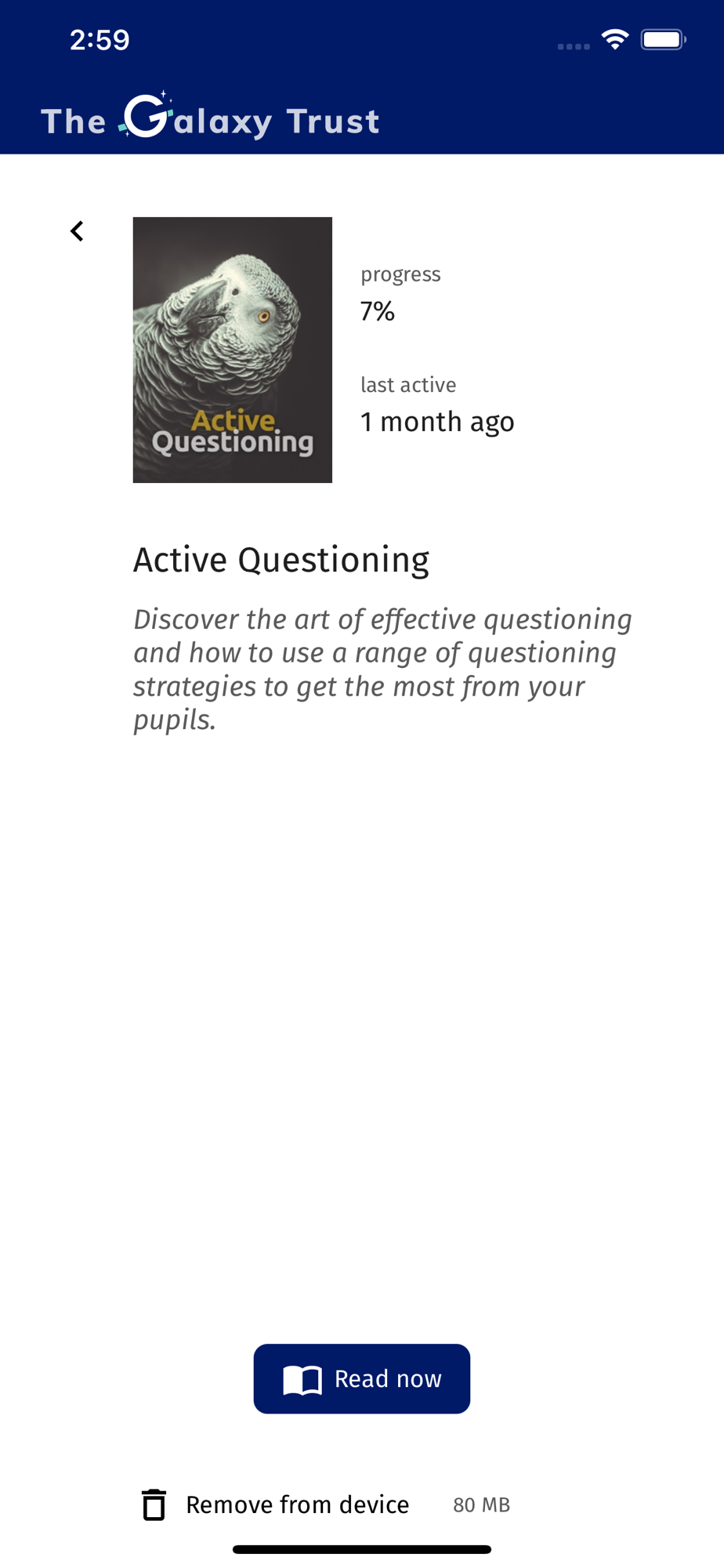 You should only download this app if you have login details from your school, or from the Galaxy Trust directly. Once logged in, you will be able to download your publications and start learning straight away on your device. Complete short courses on a wide range of topics and use the built-in tracking to see how you have progressed.