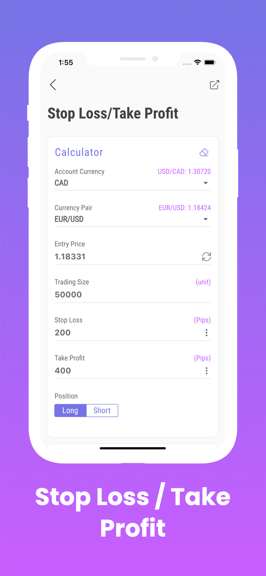 Determine how much you stand to lose or gain if your stop-loss or take-profit levels have been reached.