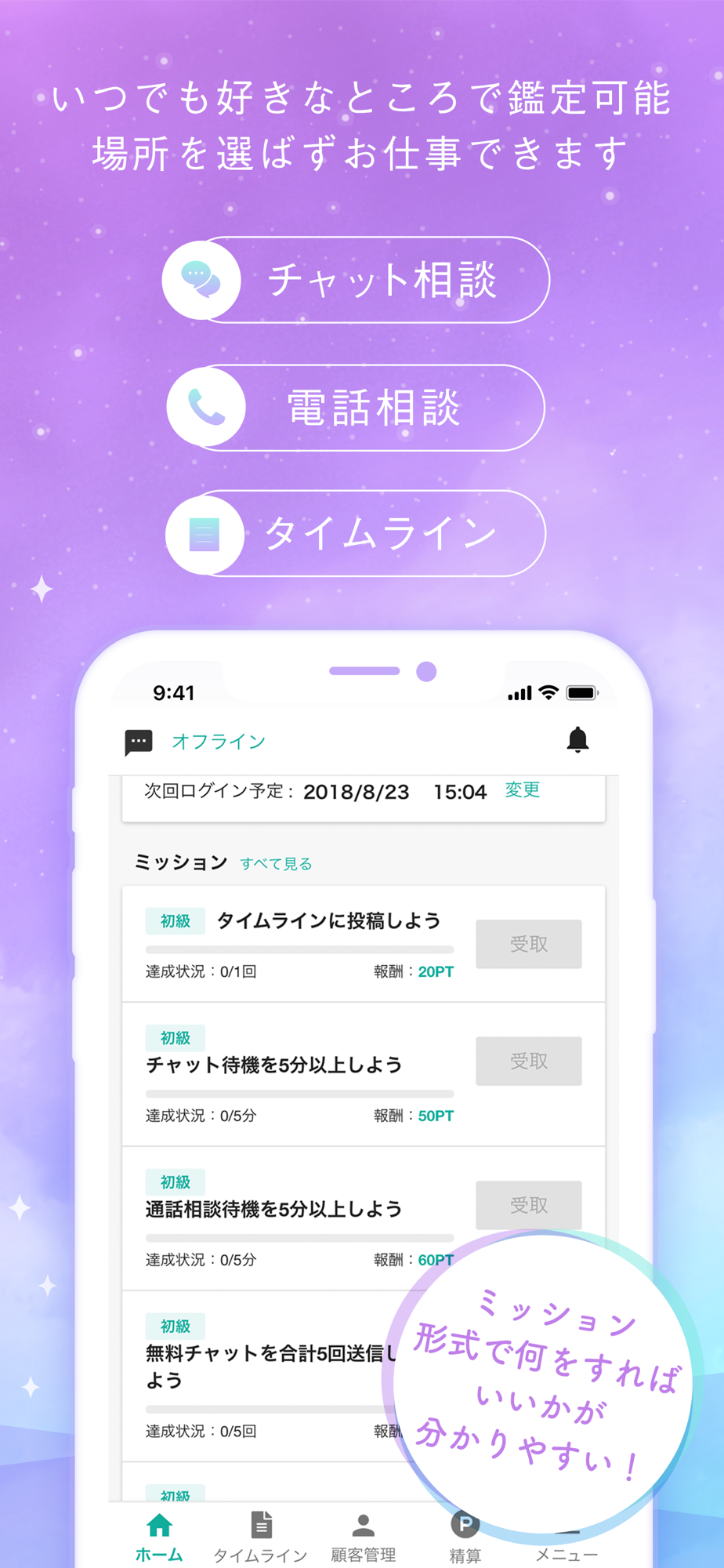 チャットを使った占いや、電話での占いの両方がこのアプリで行えます。