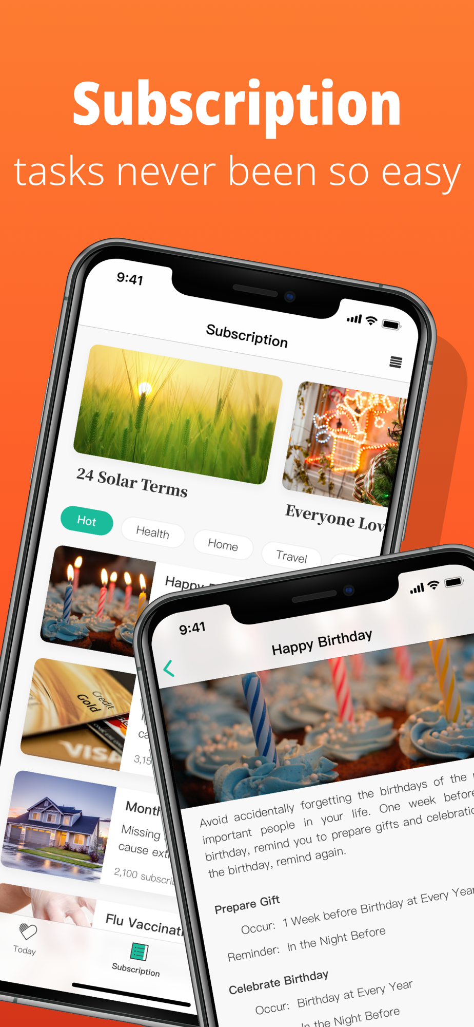 Dislike integrates many typical everyday life affairs into Subscriptions, such as annual motor vehicle inspection, credit card repayment, health check, etc. Covering health, finance, house keeping, travel, and public services.