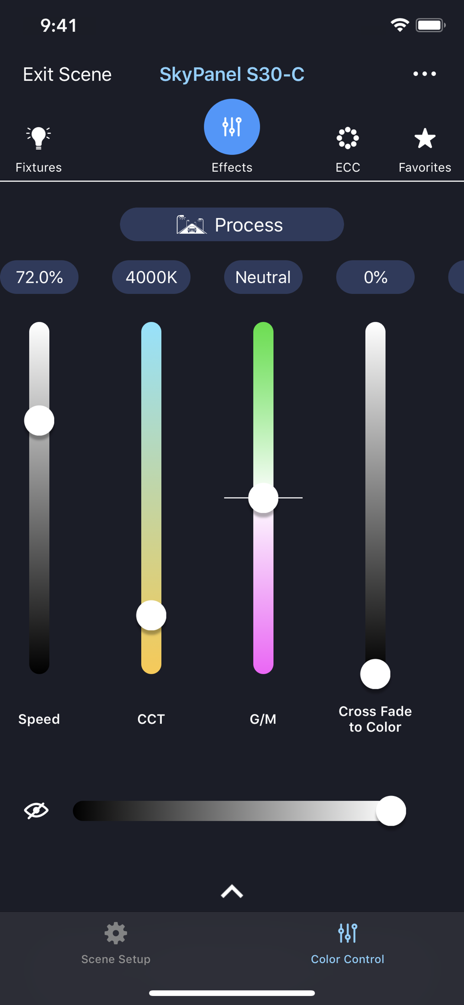 - Control CCT, HSI, RGBW, x,y Coordinates, Gel Selection, Source Matching and Lighting Effects