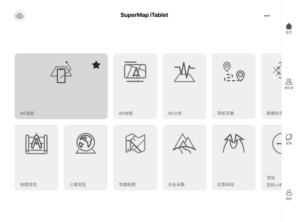 SuperMap iTablet支持标题、图标、首页定制等全功能界面定制;支持小程序扩展插件开发,实现插件下载和部署管理,无需重新启动;定制满足行业需求的系统,为自身业务增值。