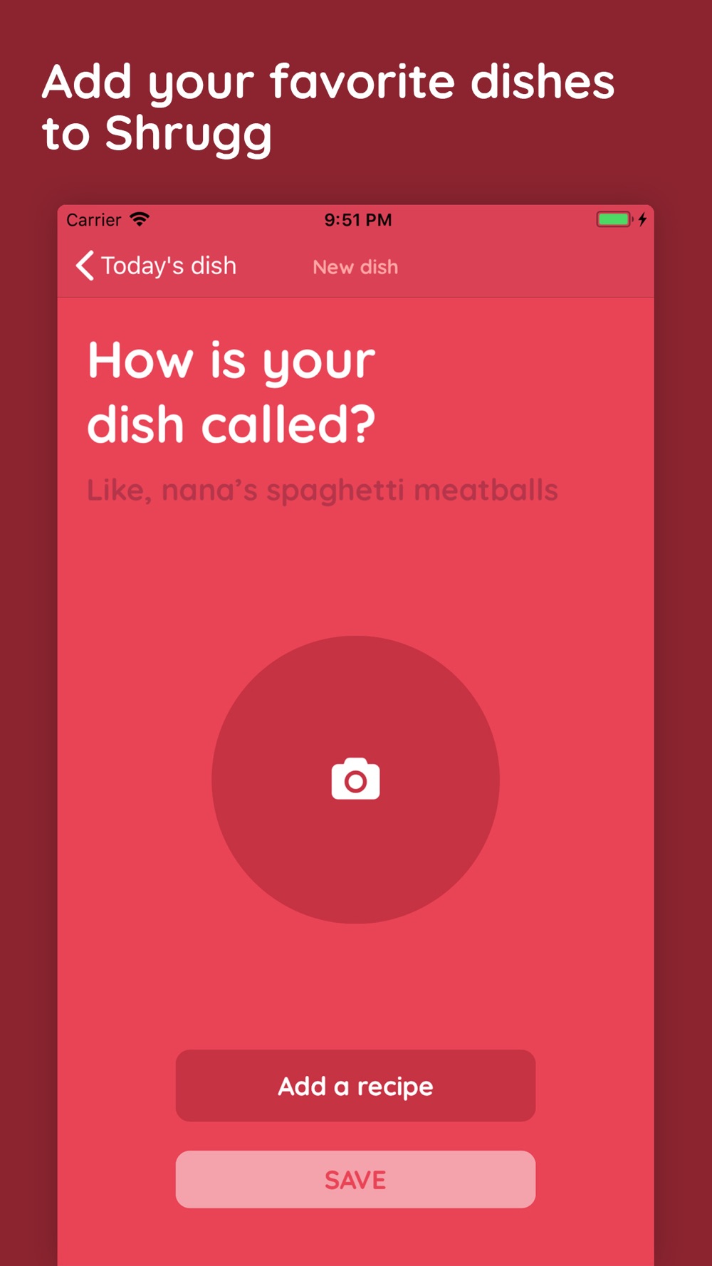 Shrugg will help remind you of all those dishes you know how to cook - and suggest you a different dish every day.