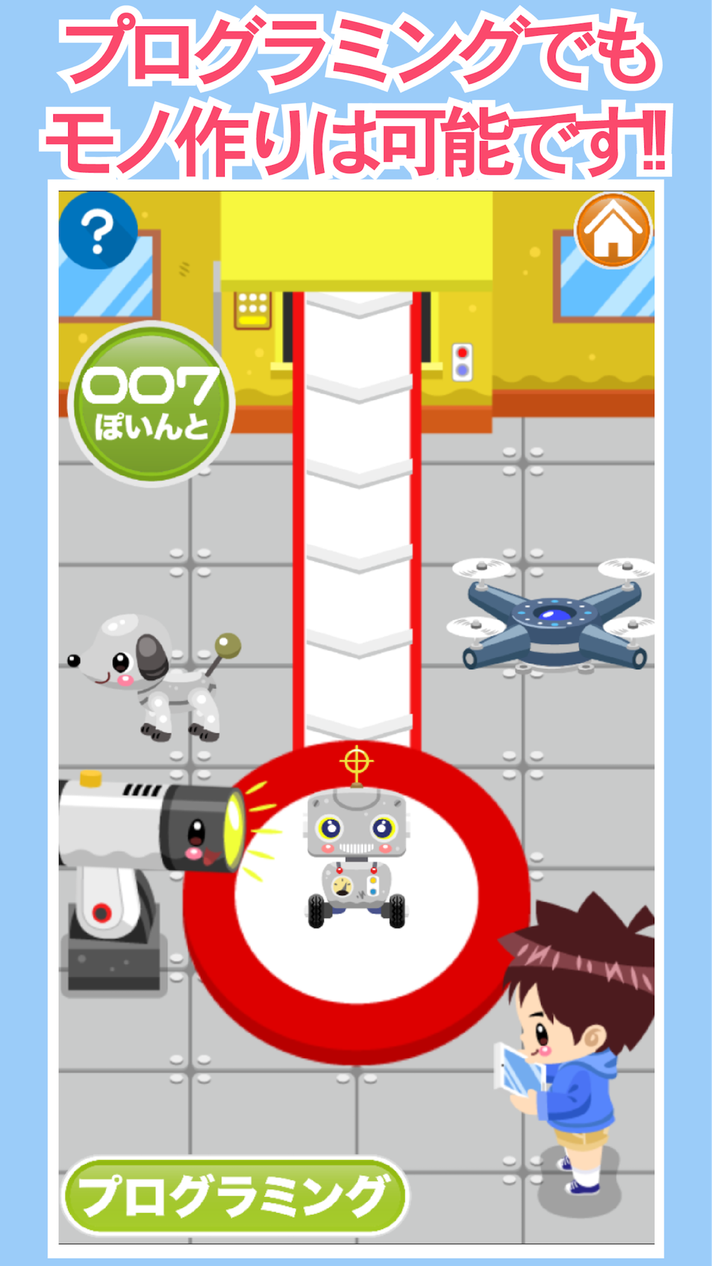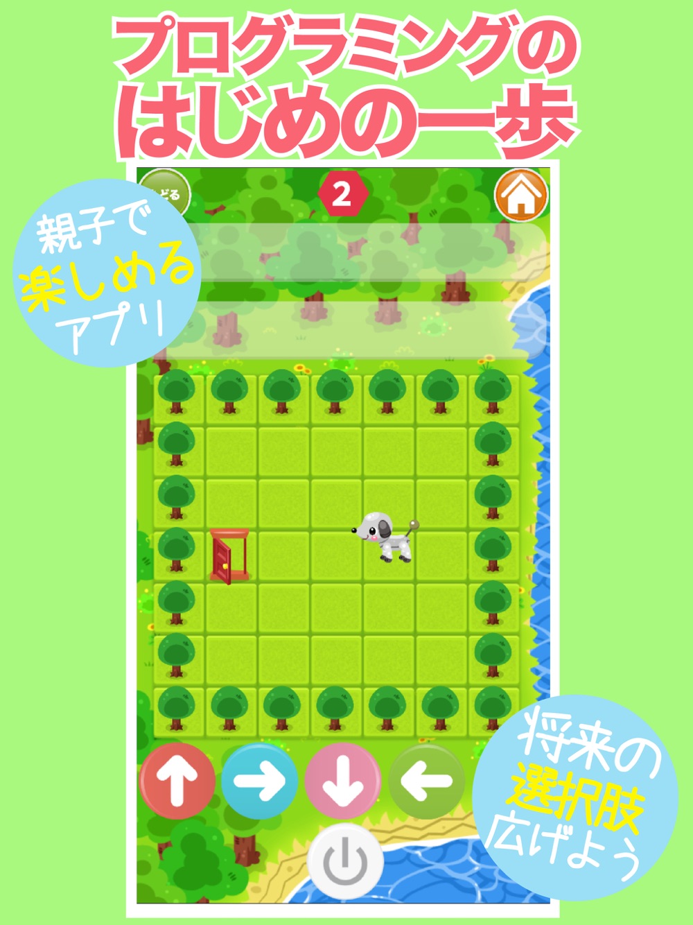 可愛い犬のロボットをコマンドを入力してゴール(扉)まで進めましょう!