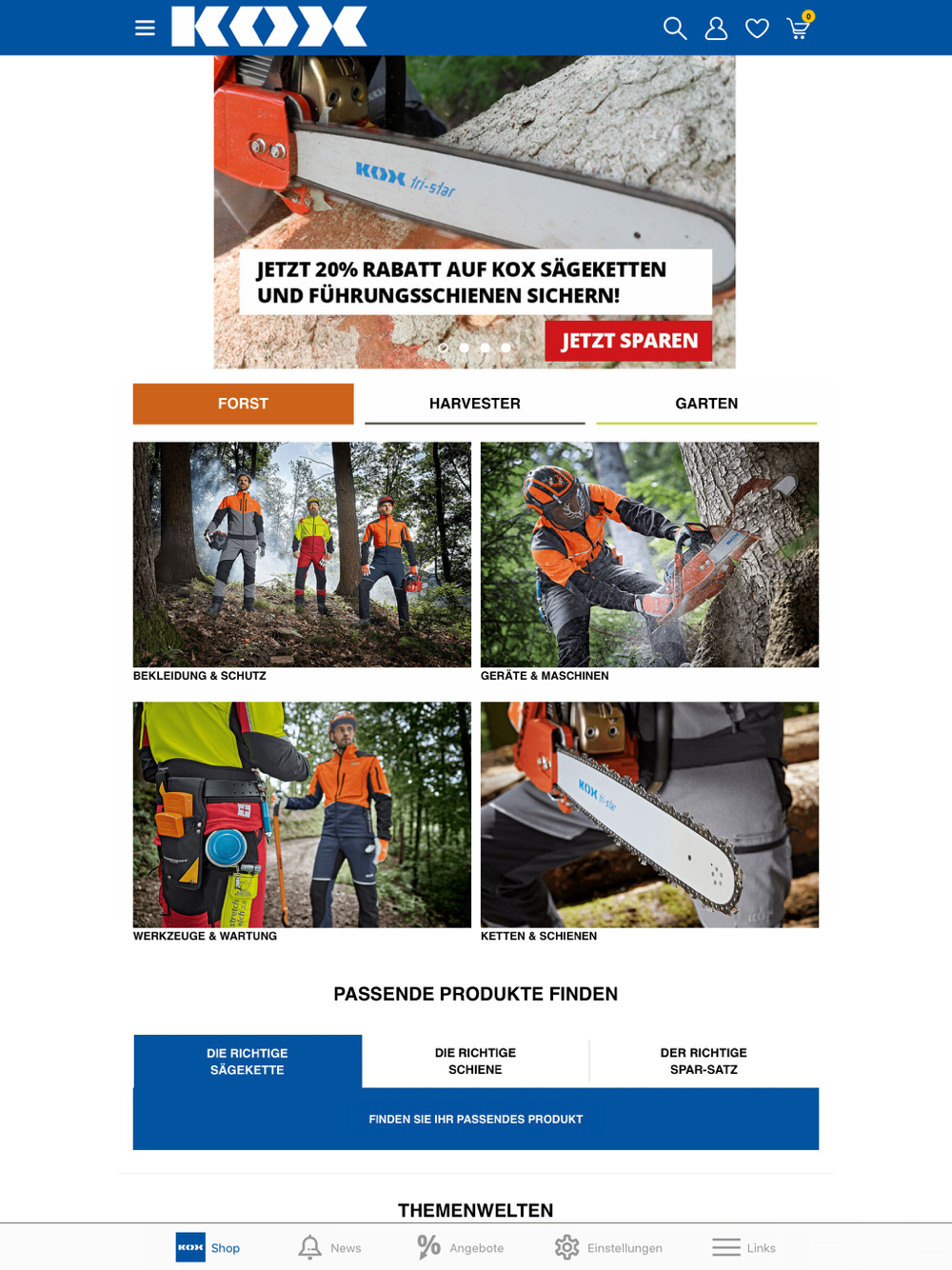 KOX ist Ihr Profi-Versand in Forst und Garten: Über 3.000 Artikel ganz einfach unterwegs einkaufen!