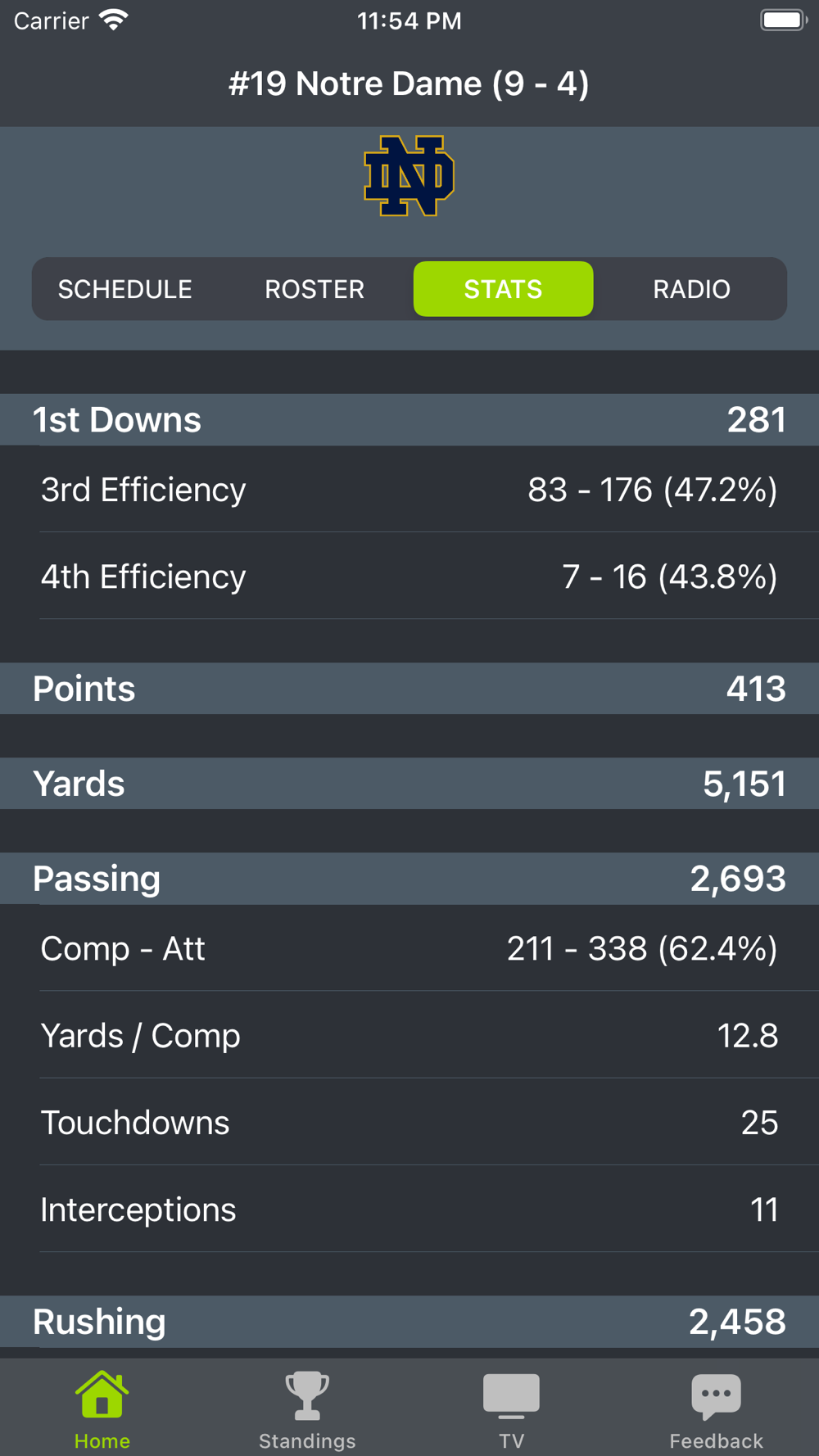 Notre Dame Football provides scores, links to live radio, schedules, tv channels, player profiles, and game matchups in one location.