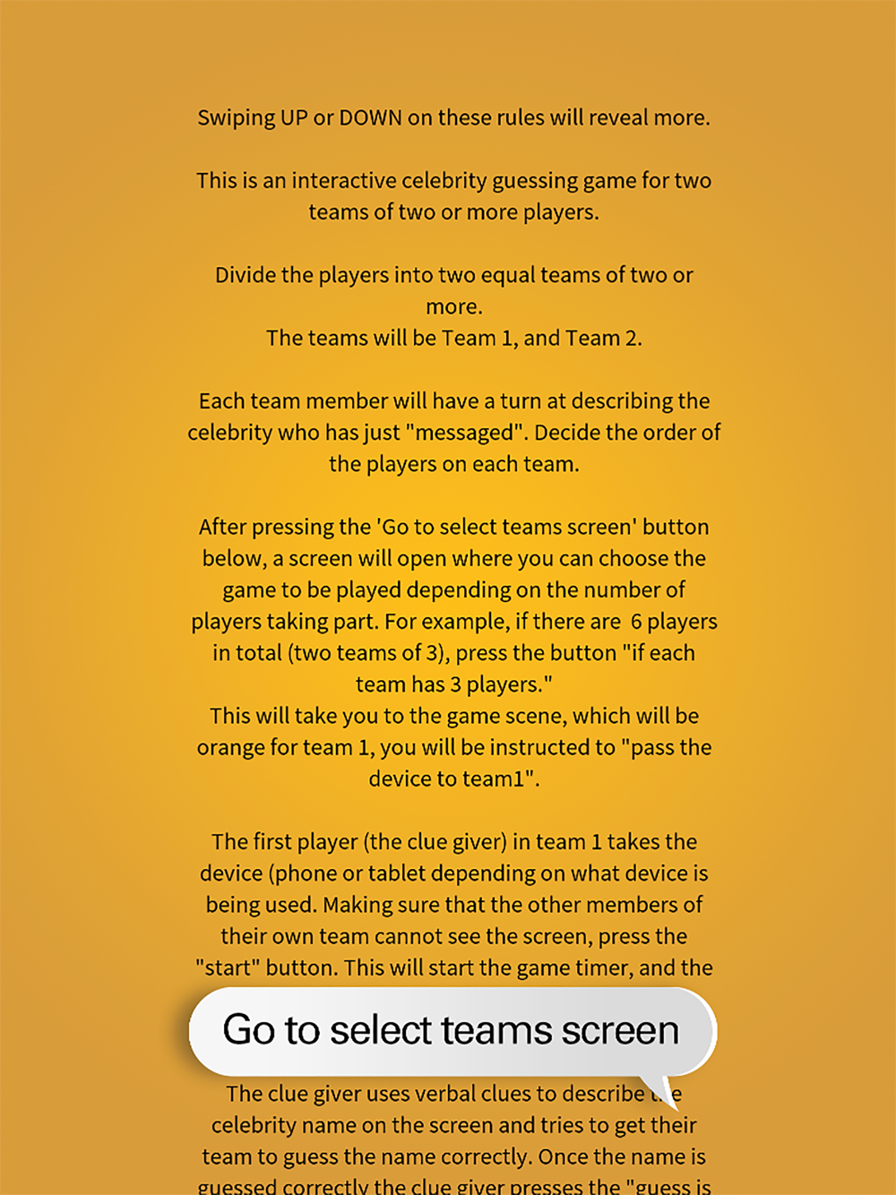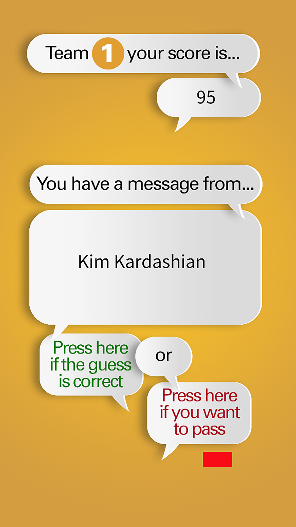 Select the number of players in your teams, press the start button, and the first celebrity name will appear in the message window.
