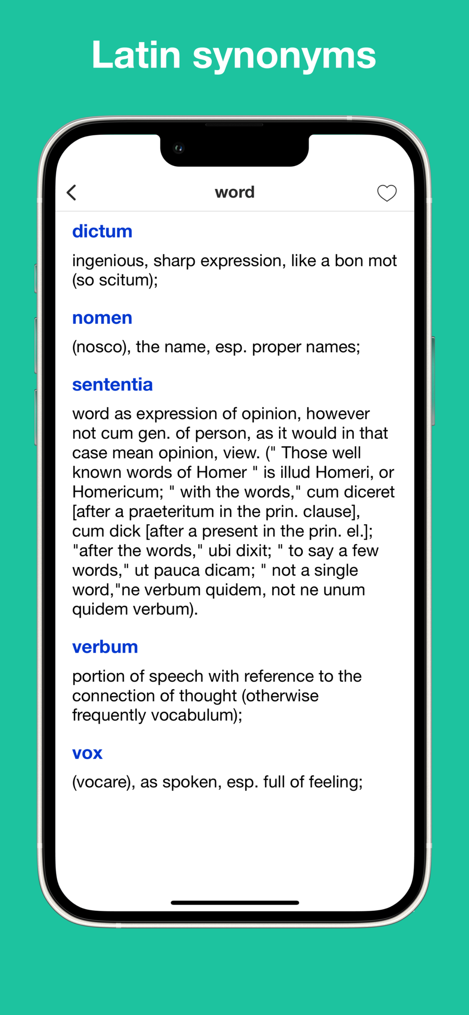 This app offers the handbook of Latin synonymes with searchable and browsable functions.