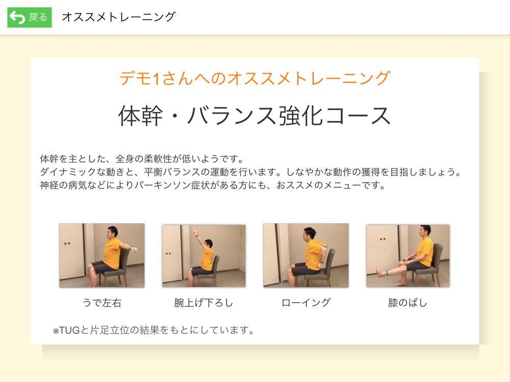 ○TUGと片足立位の結果から、歩行能力および転倒リスクの判定も行うことができます。