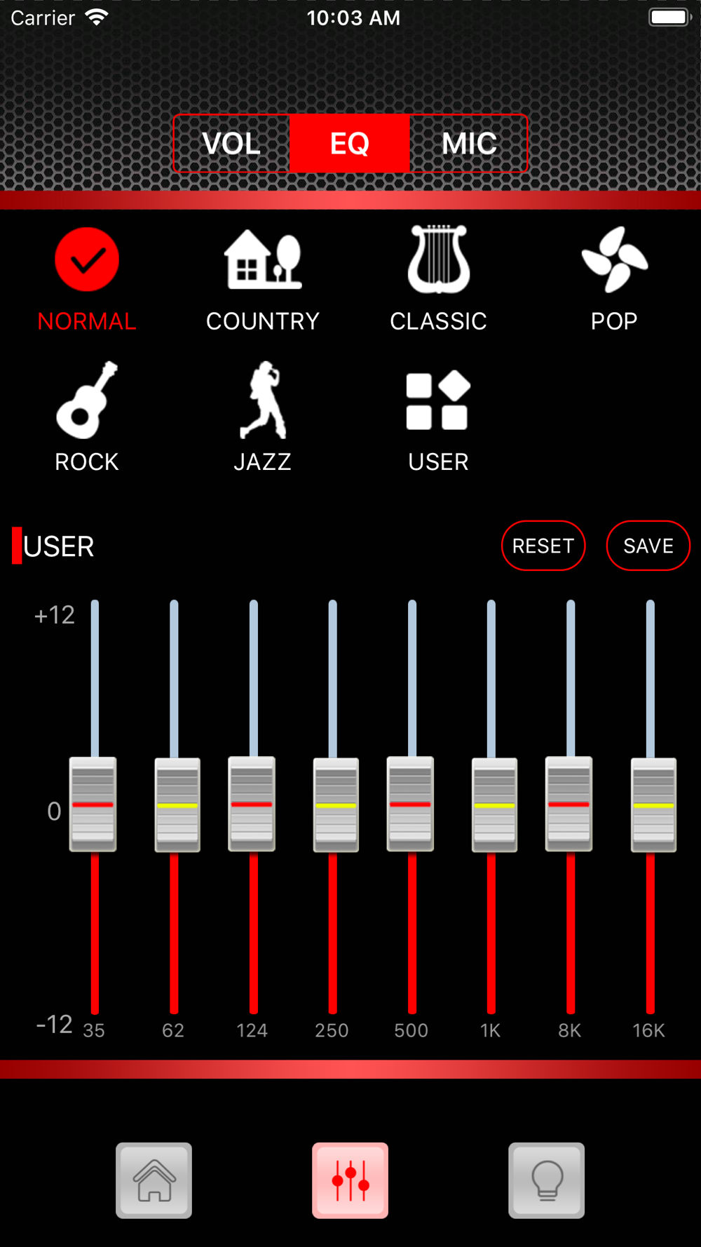 4,EQ: You can choose the corresponding mode according to the built-in EQ effect, but also according to preferences custom EQ