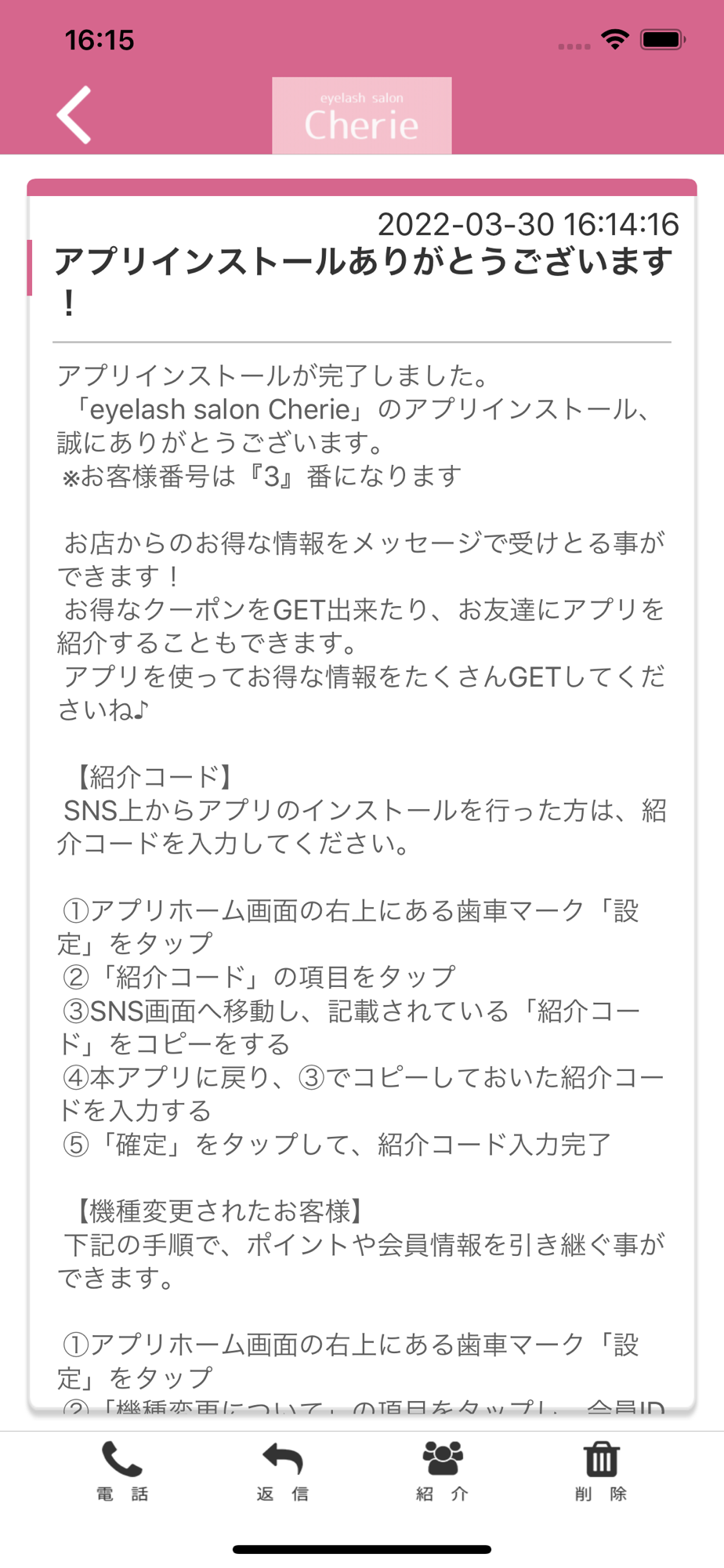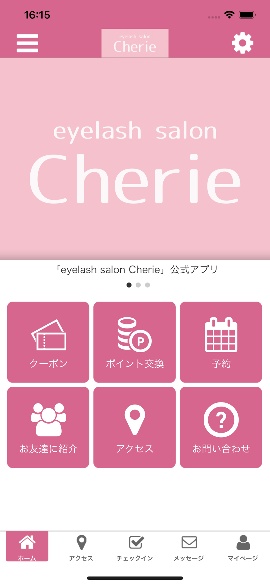 このアプリでは、Cherieの最新情報の受け取りや便利な機能を使う事ができます。