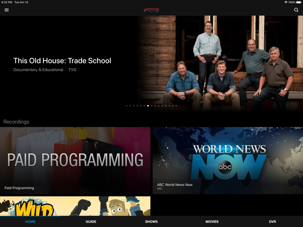 Experience the live TV you love without being weighed down by prehistoric Set Top Boxes and cables. United TV is a revolutionary APP that runs on today's most popular streaming media devices. Which means putting the TV experience in your hands to enjoy today's top series, sports and entertainement. TOP FEATURES* Live & Local: Enjoy your favorite LOCAL and national broadcast shows like never before. Bing watching shows. Replaying the big game. It's more of what you love about TV with less dead weight. Program Restart** 15 minutes late to watching your favorite show? Not anymore, UnitedTV allows you to restart the live feed from the beginning. Replay TV*** UnitedTV has you coverd. You'll never miss your favorite show or game again because we store the last 72 hours in the cloud for instant access. Cloud DVR*** Record your shows and movies in the cloud. Access them from virtually any device on any TV in your home. Profiles and Recommendations**** UnitedTV learns your preferences and suggest new shows and movies you'll love. Setup profiles for the whole family so everyone gets a personalized, customer inspired experience.