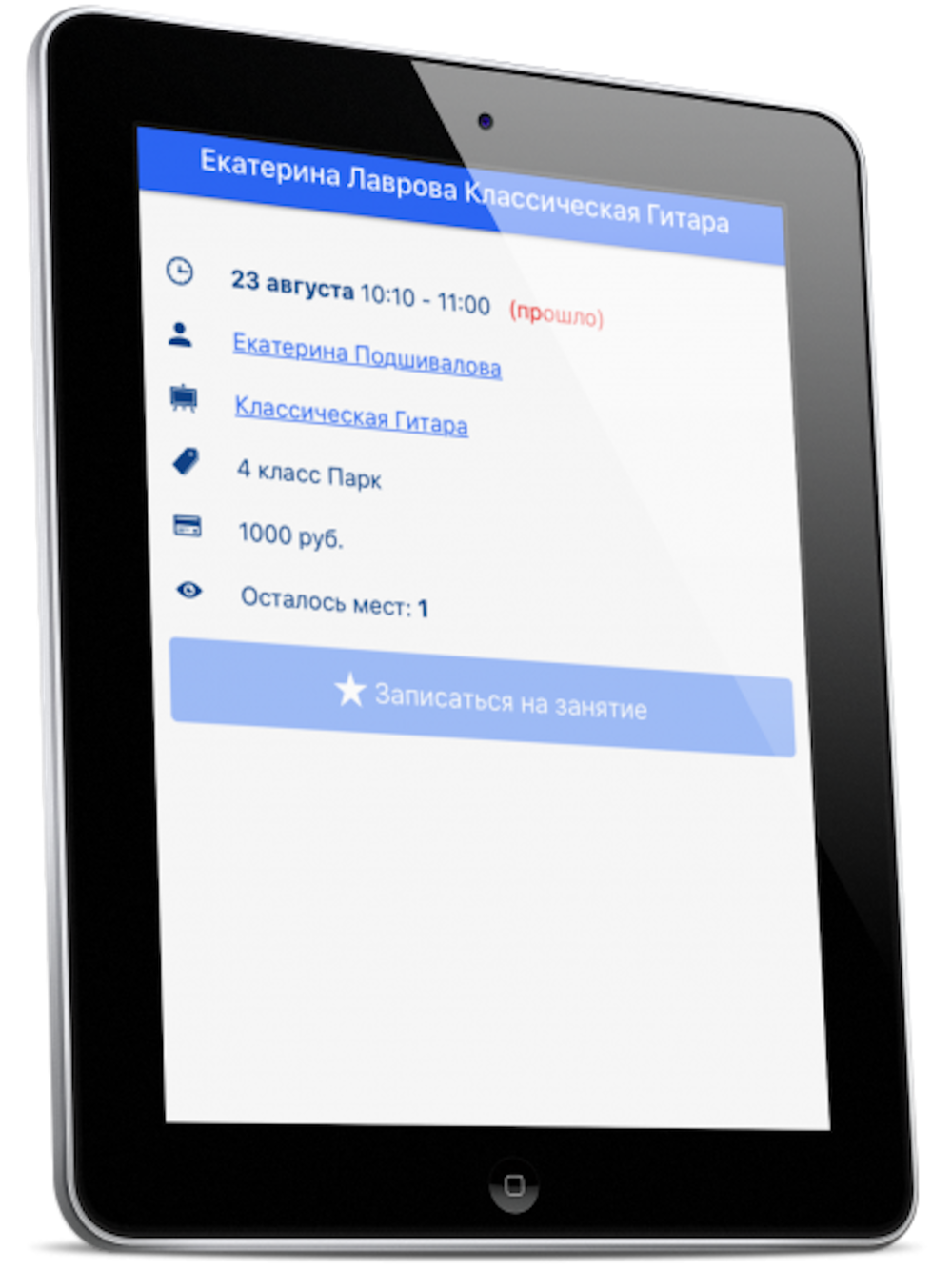 Так же с помощью приложения Вы можете записаться на мастер-класс в режиме онлайн.