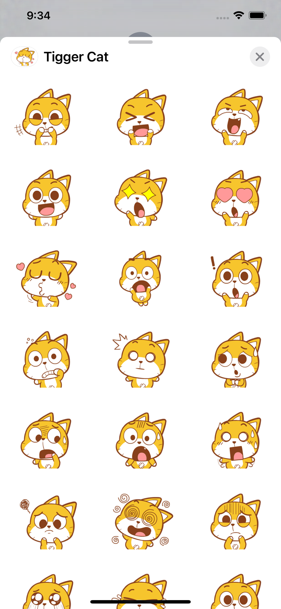 Tickle your friends and family with Tigger Cat stickers in your texts. Impress or taunt your enemies also.