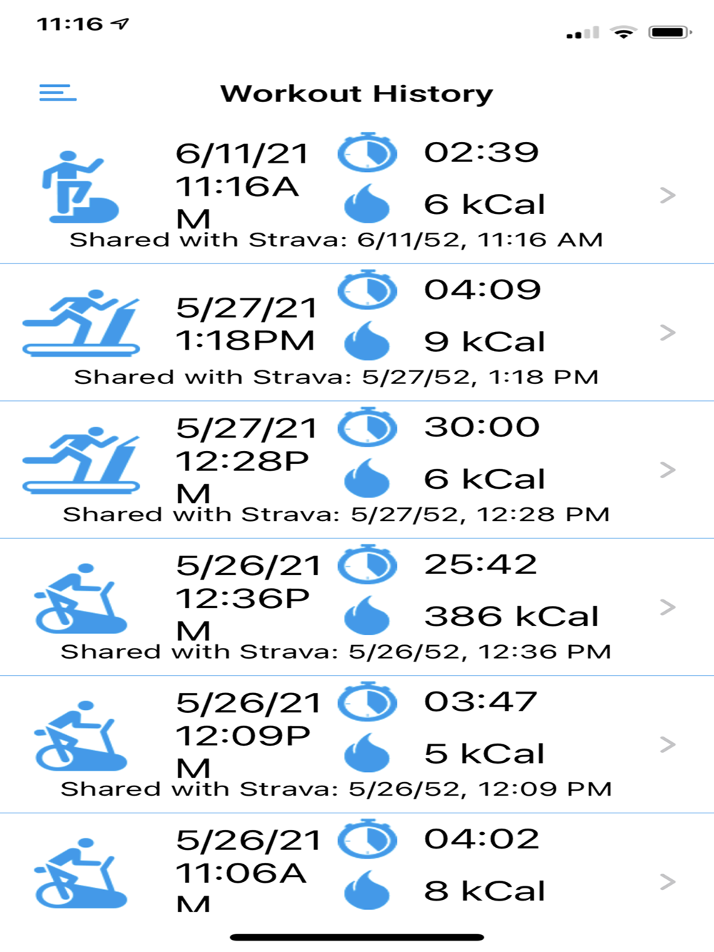- Integrates with Health App to create Activity entries for tracking your workouts via the Health app