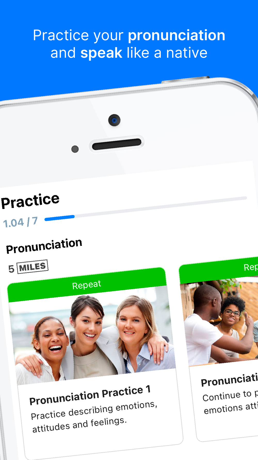 You will also find a game component, which will allow you to "travel" around the world while you learn English, make your process more fun, and stay motivated to meet your goal. Earn miles, earn badges, and be part of leagues in which you will compete with other students.