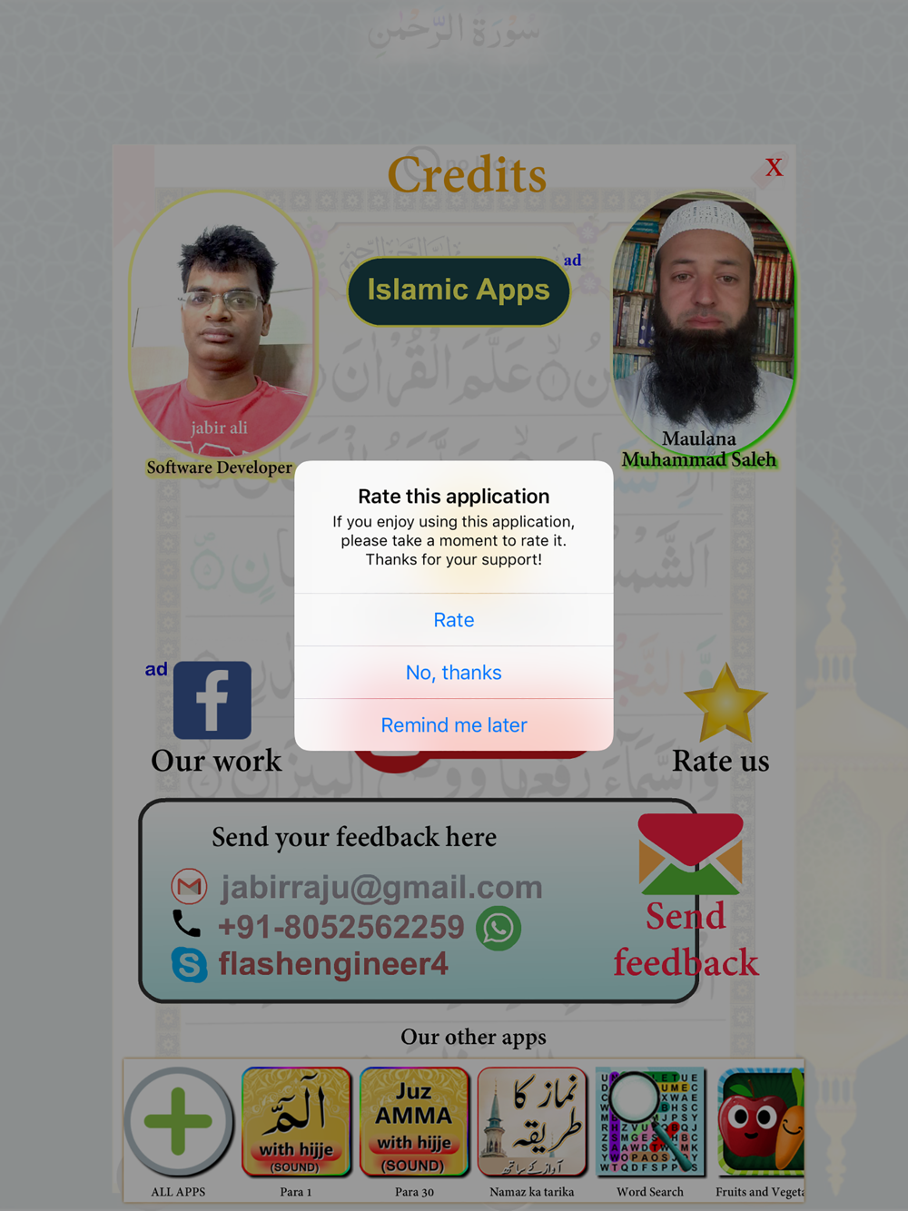 Surah ar Rahman App is 55th chapter in Islamic Book: The Holy Quran along with offline audio. This Surah Rehman is recited by Maulana Mohammad Salih in his beautiful voice.