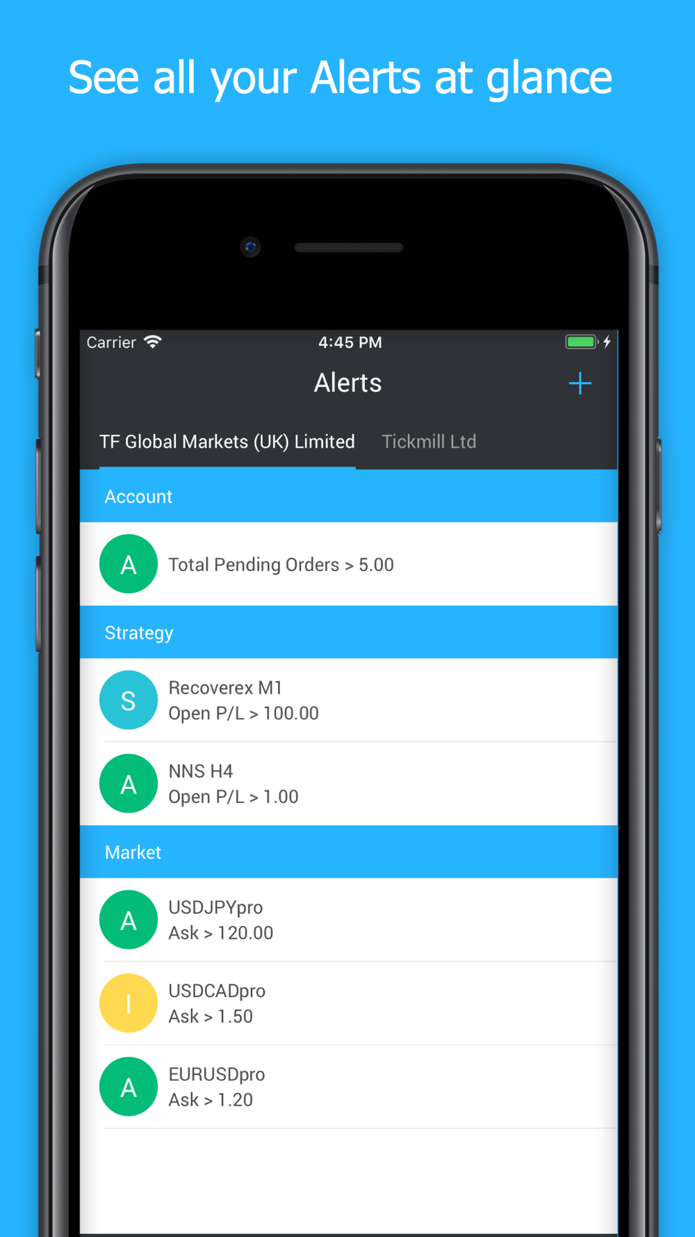 See your open trades organised by strategy and check the Open P/L, the Opel Lots and more.