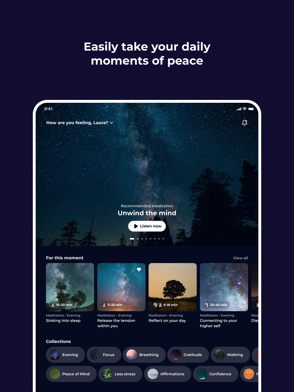 Use the meditations to release stress and deal with fear, anger and sadness. Choose from 200+ guided meditations, breathing exercises and relaxing music to sleep more, relax, reduce stress and amplify your focus, awareness and concentration.