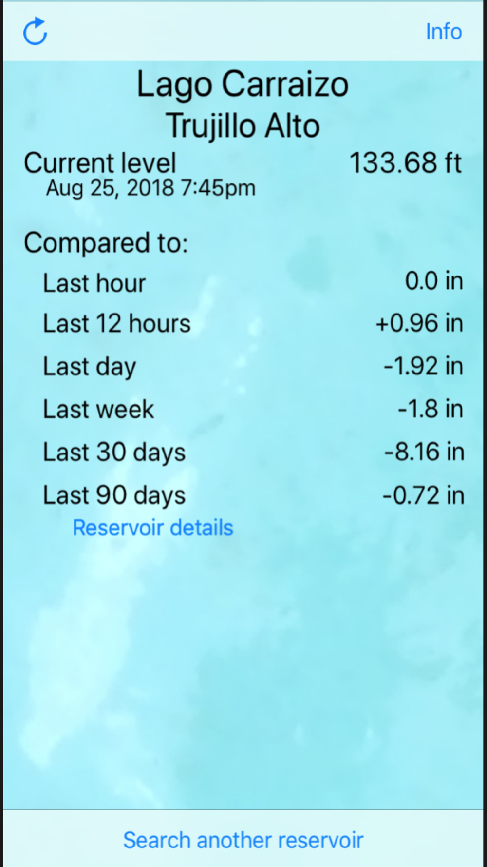 Find the water levels of many of Puerto Rico's reservoirs. With historic values, graphs and extra information.