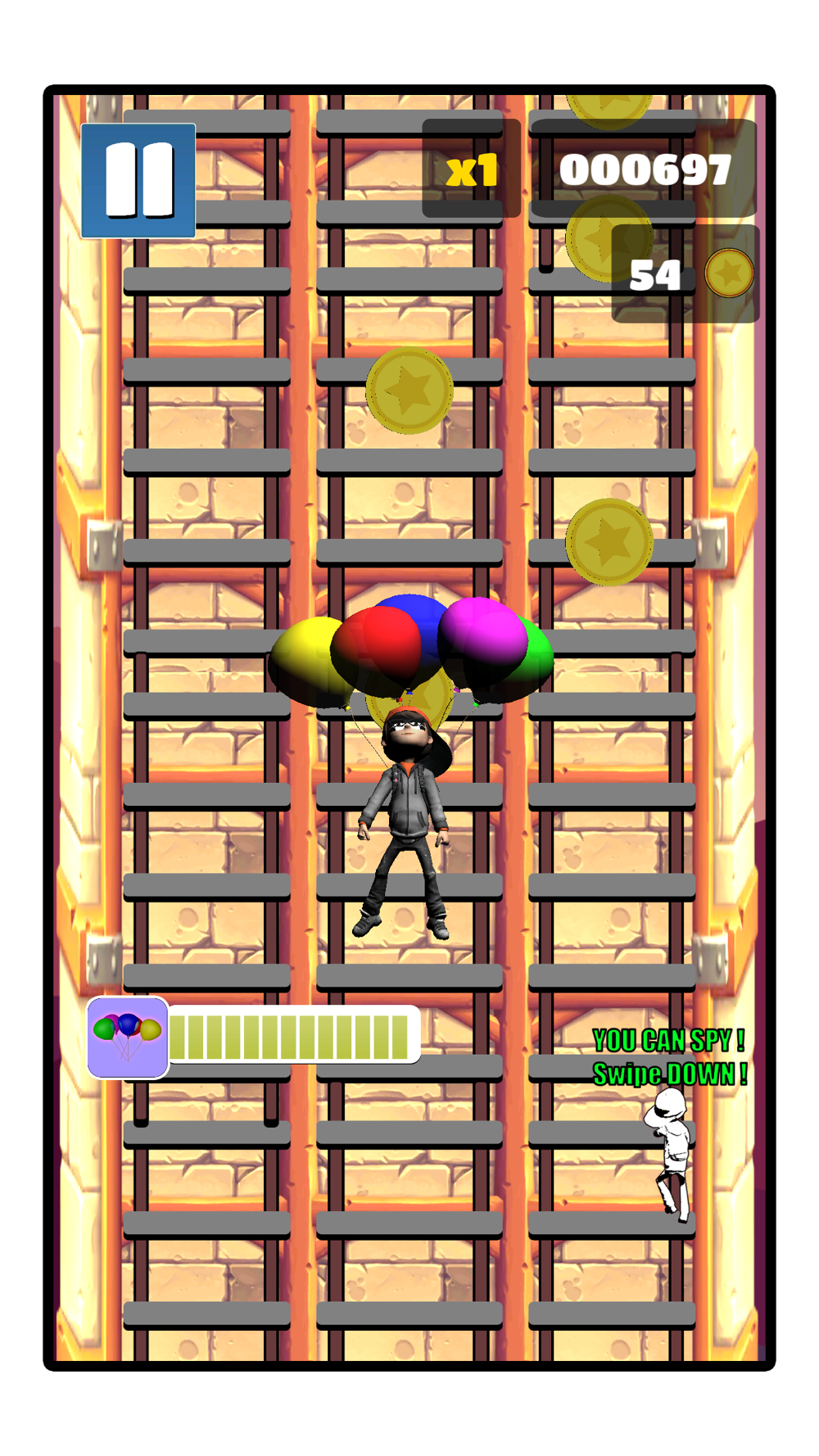 Run away from hurdles and falling boxes.