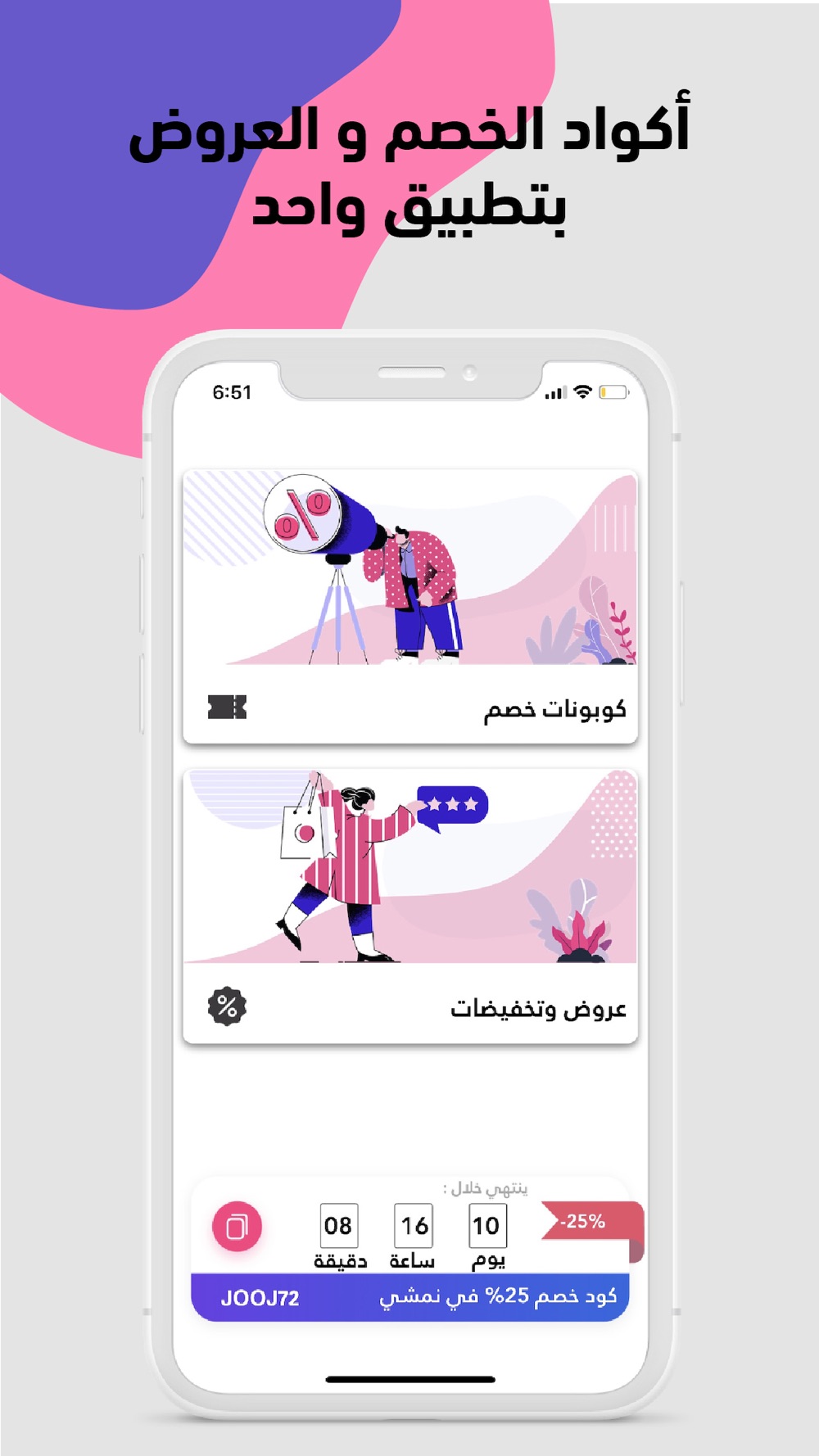 المتسوق تطبيق يسهّل عليك الحصول على أقوى كوبونات الخصم لدى المتاجر في الشرق الأوسط مثل ( نمشي, سوق كوم, نون, شي ان, نايس ون, .. ) وكذلك احدث عروض المتاجر بخصوماتها التي تصل الى 80% ويتم تحديث الاكواد بشكل فوري
