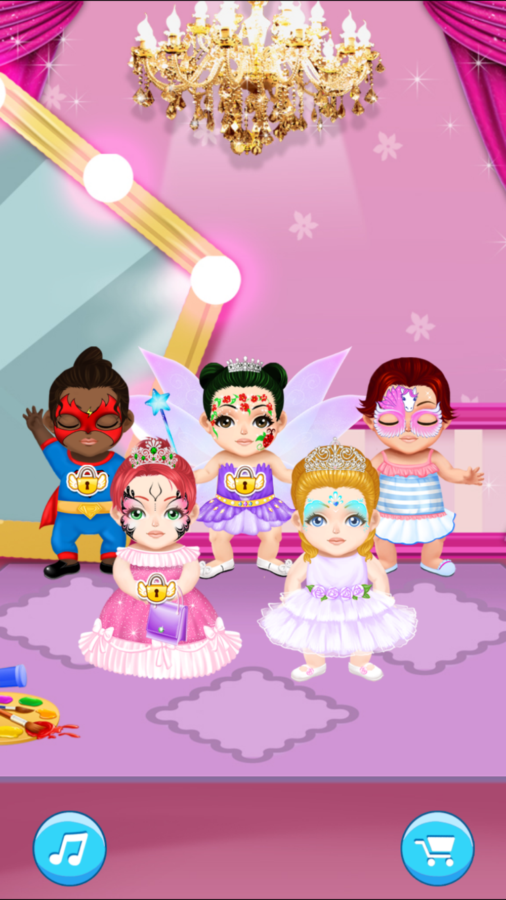 Get ready for a face paint party that will leave you bursting with excitement! With tons of adorable characters and playful backgrounds to paint, there are so many options for coloring fun! Each character has her own coloring pages with her own special style! Customize your painting creation with specialized tools like the magic wand and shaped-brushed in both flower and heart designs! So take out your face paint and brushes... it's time to party!