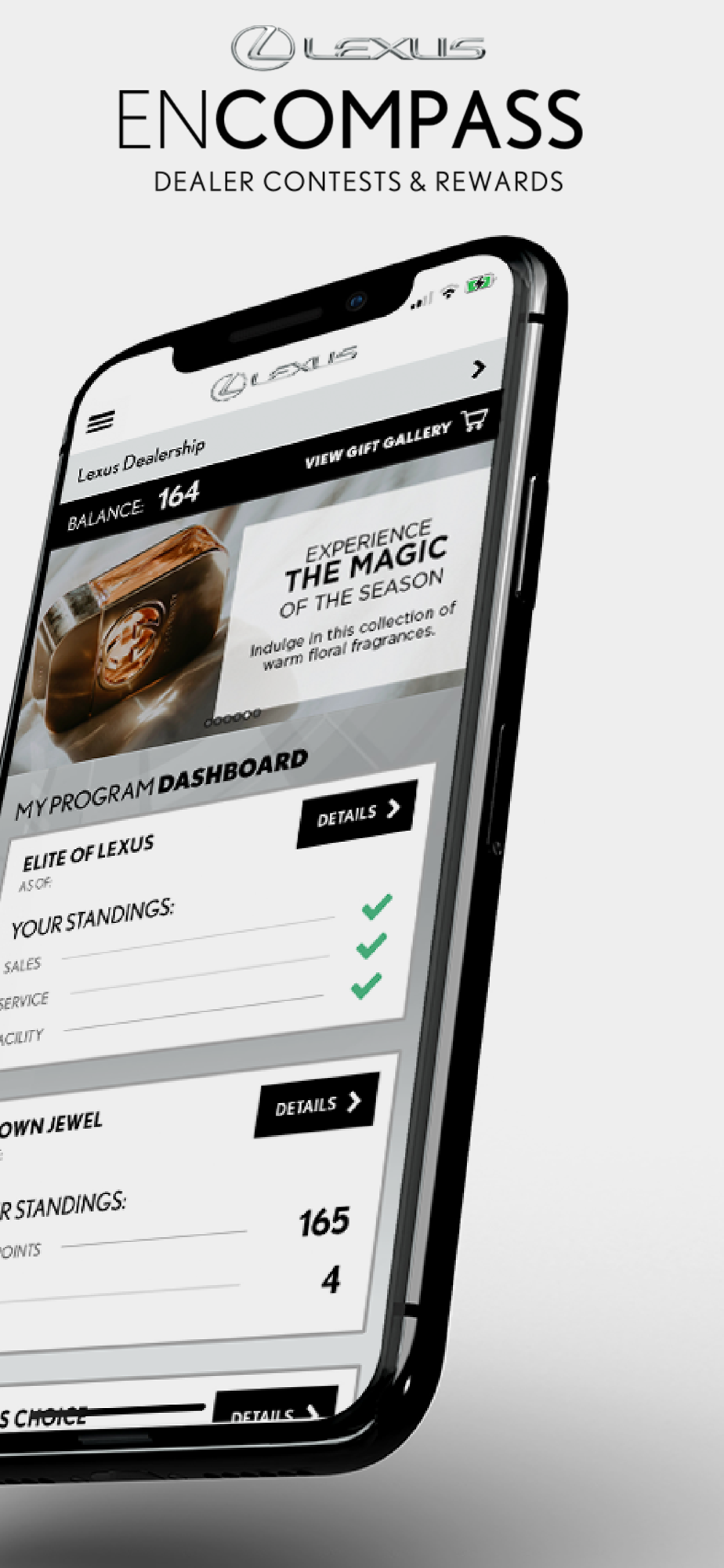 The ENCOMPASS App is a convenient mobile app to view performance dashboards, by program, for contests, incentive programs and rewards.