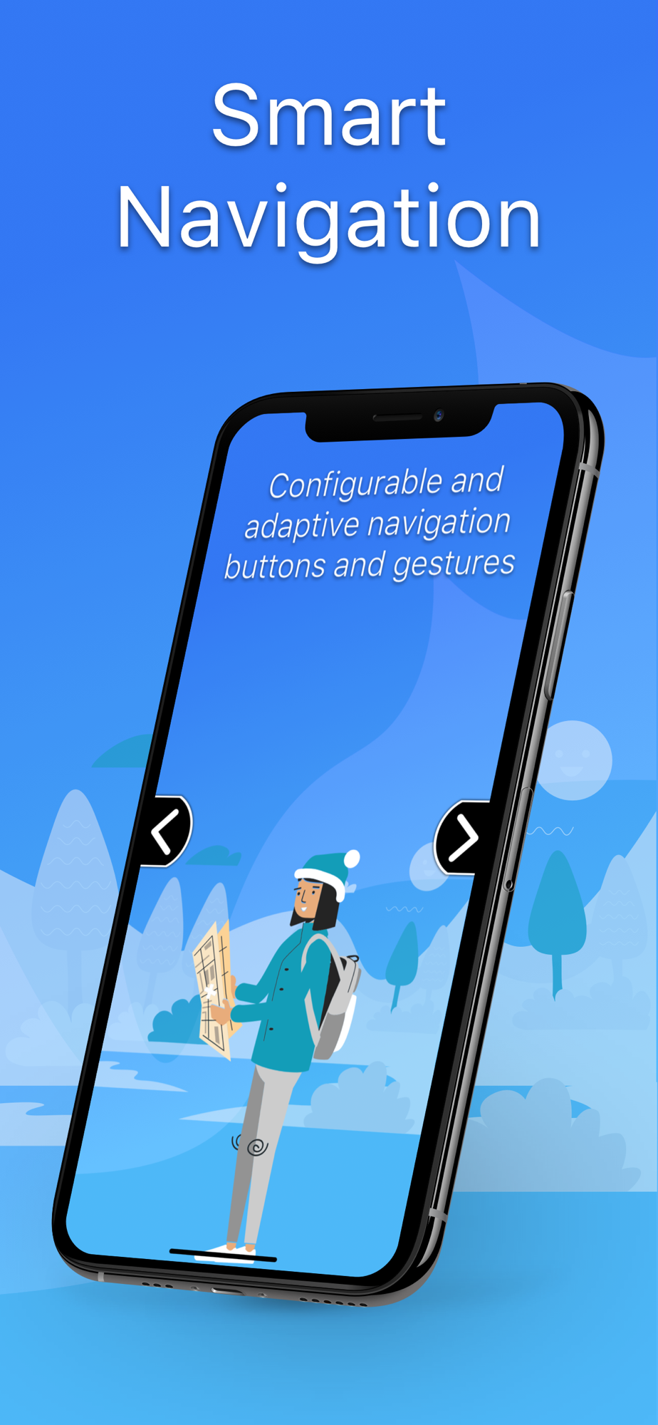 • Smart Navigation Buttons: WebFrame now supports navigation buttons that will automatically show and hide depending on the ability to navigate backward and forward, and home. They can also be configured to dynamically slide offscreen as the page scrolls to minimize their visual impact. Finally, they can be repositioned vertically on the screen to prevent obscuring underlying page content.