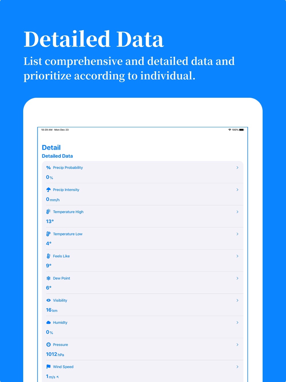 "T.W.I.G" unlike most other weather applications, "T.W.I.G" does not present complex data to you at once, but only shows the weather information that may be most needed. Such as current temperature, weather profile, rainfall rate, highest temperature, and lowest temperature.