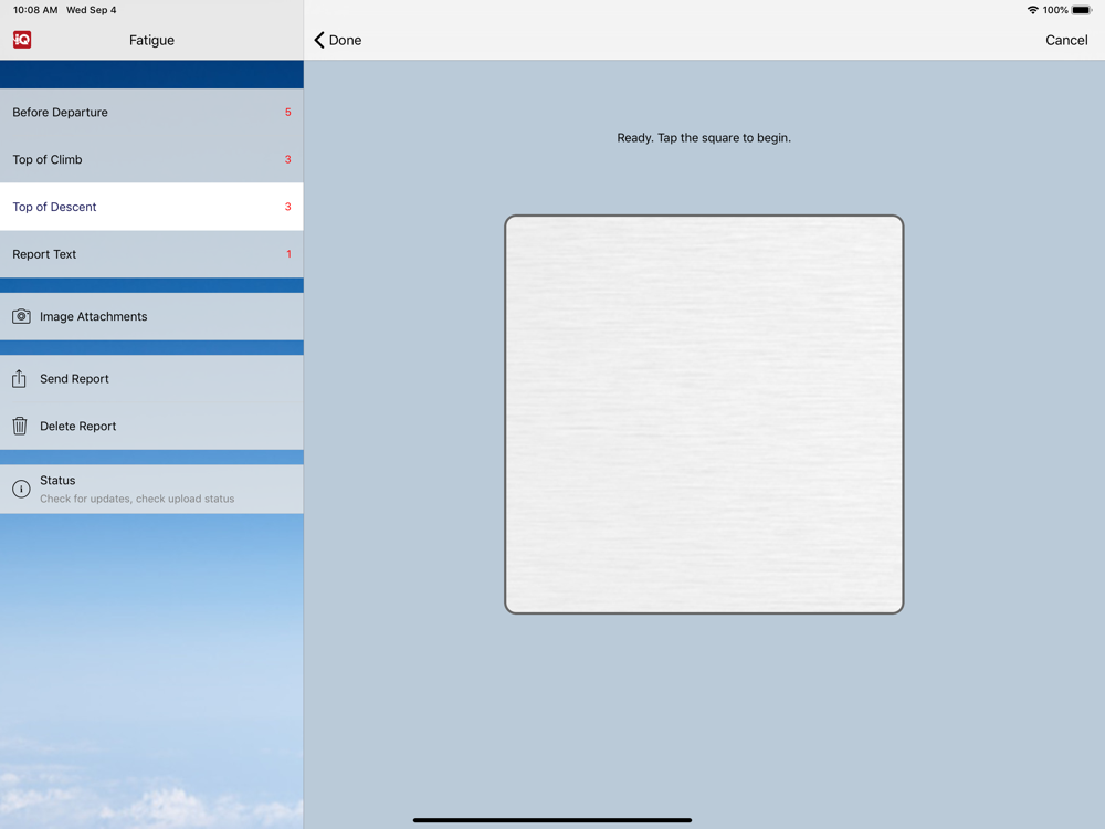 The IQSMS Fatigue App provides a smart and simple way to file fatigue reports without an active Internet connection. All data entered while offline will be automatically uploaded to the online system as soon as Internet connection is re-established.