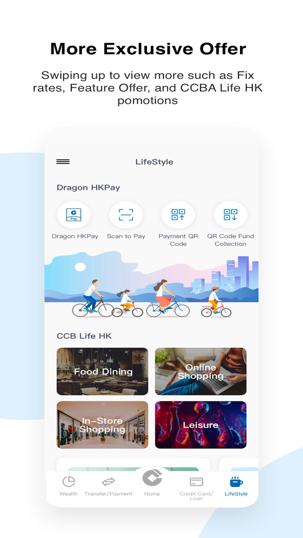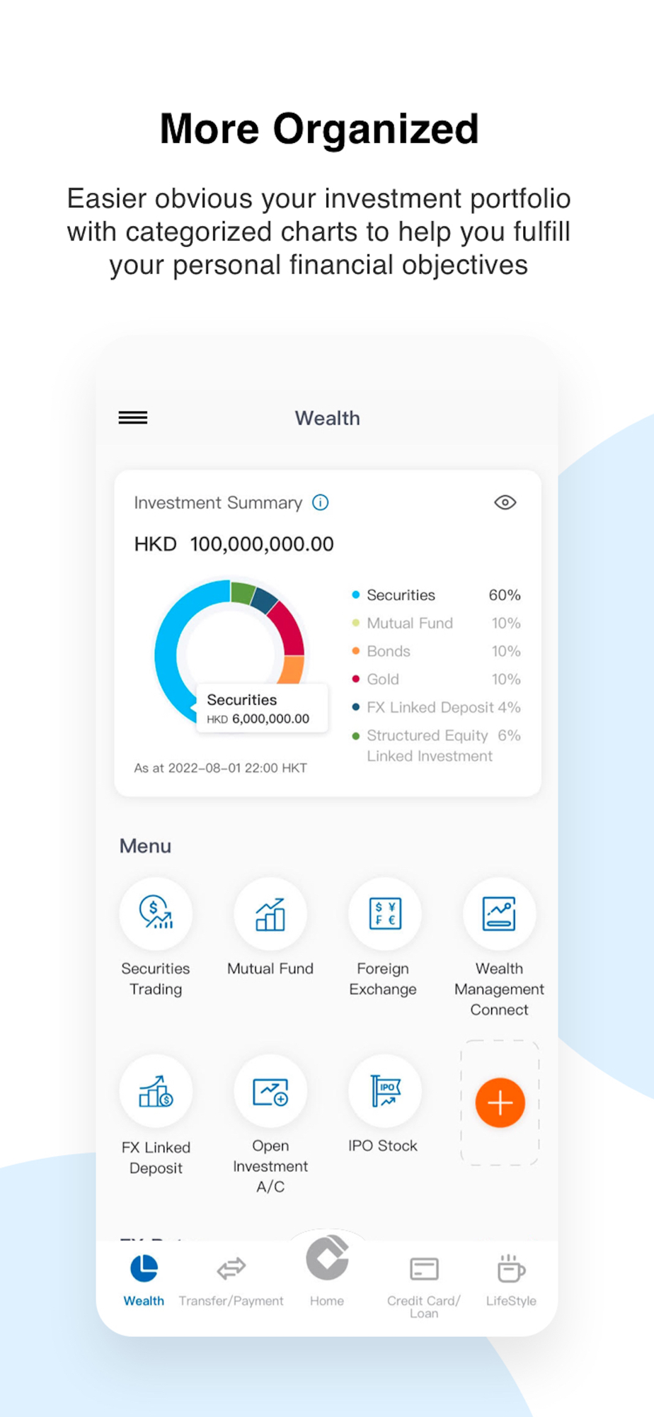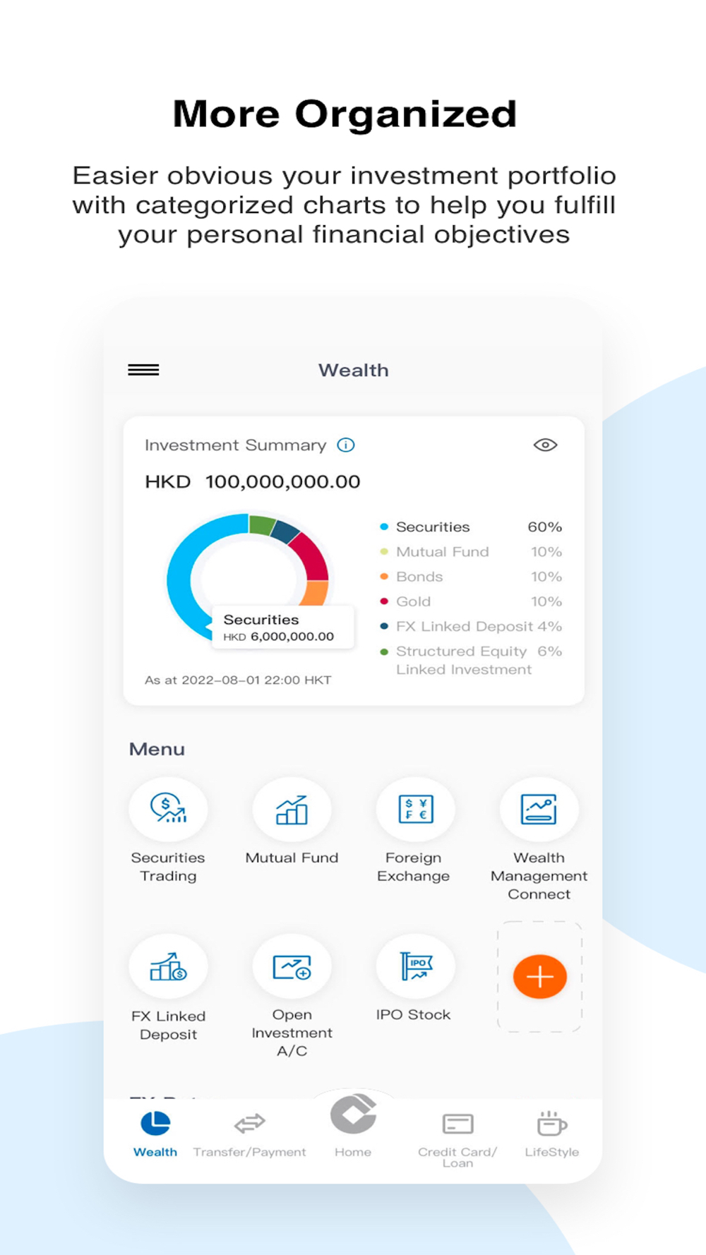 - Enhanced bottom navigation menu with brand-new five channels (including Home, Transfer/Payments, Credit Card/Loans, Wealth, and Lifestyle) to make your banking experience more flexible and suitable