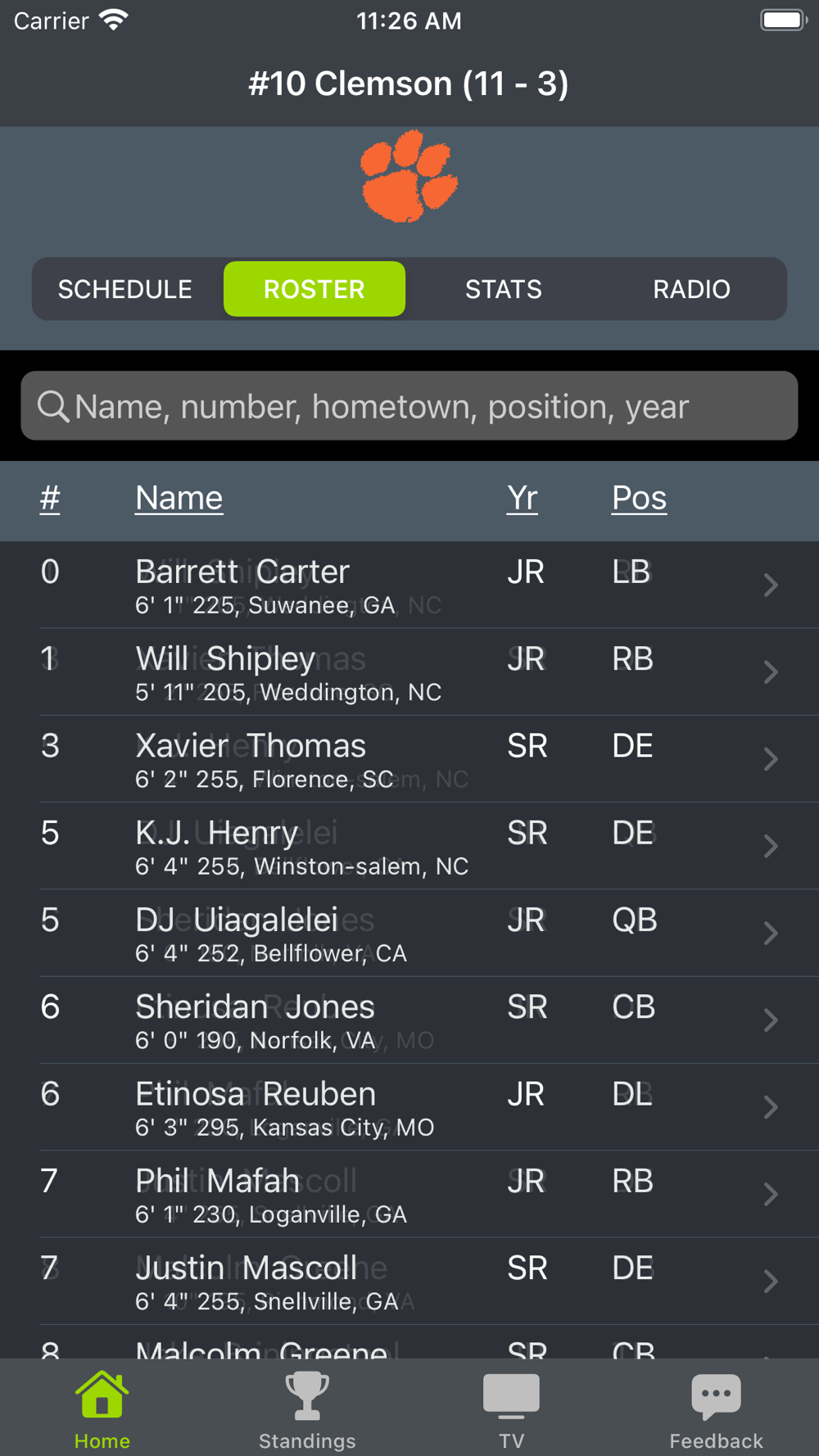 "...love the TV schedule. No longer have to look at my cable guide to look at my game schedule during College Game-day."