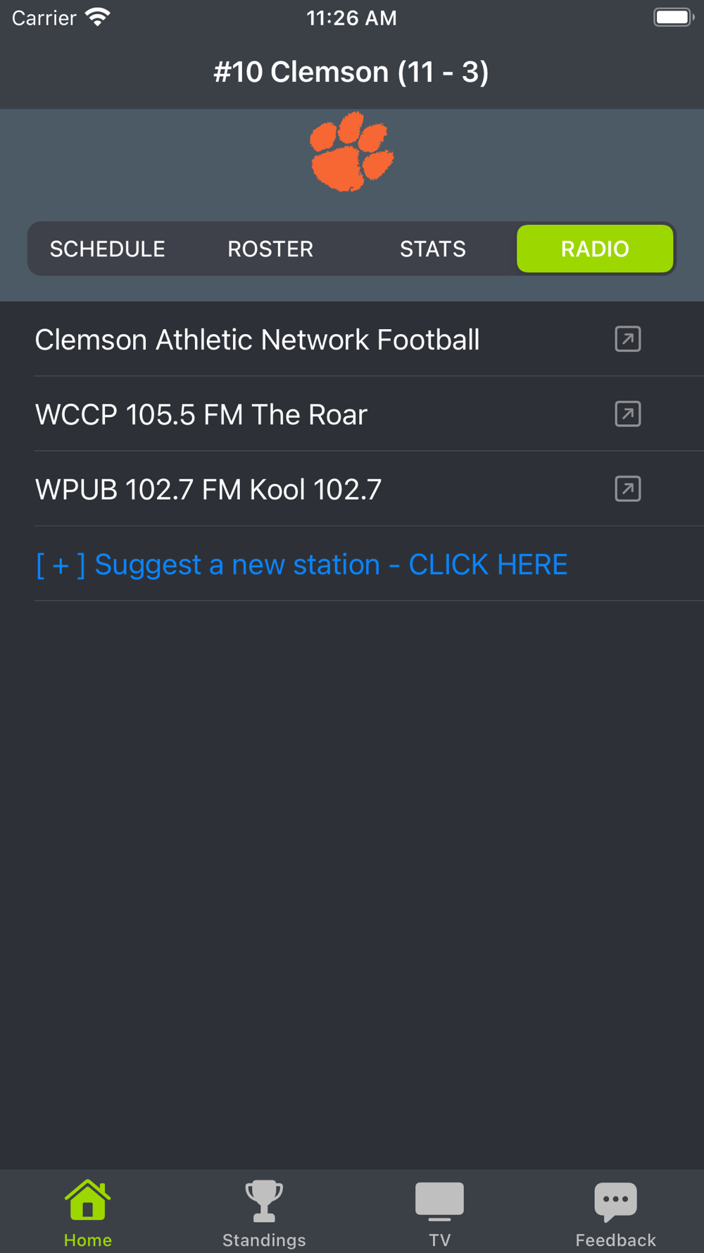 Clemson Football Schedules provides scores, links to live radio, schedules, tv channels, player profiles, and game matchups in one location.