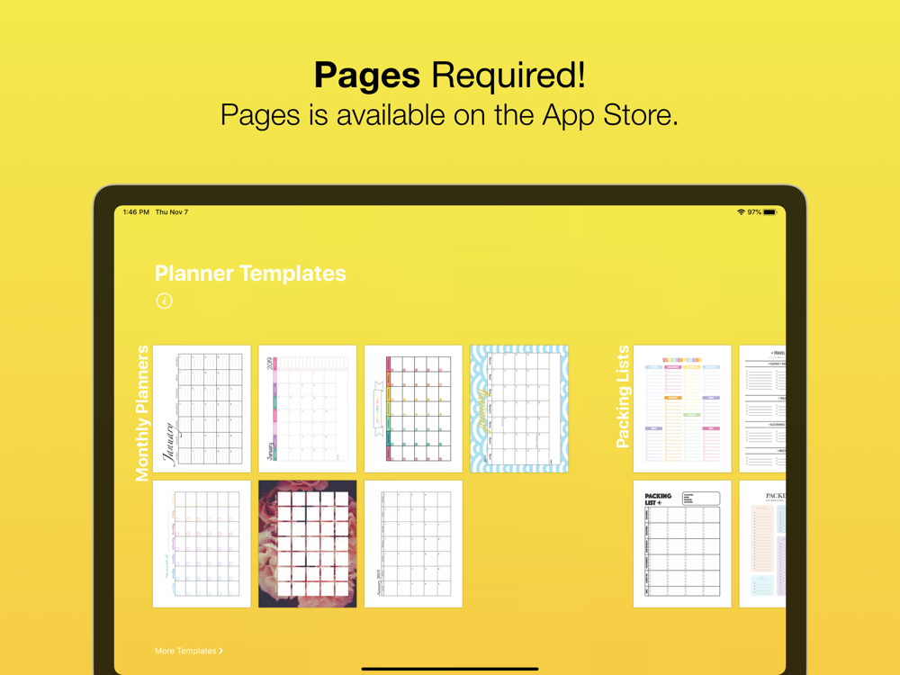 Planner Templates by Nobody is an amazing add-on for Apple's Pages app. It provides 75 templates for Pages in 10 categories.