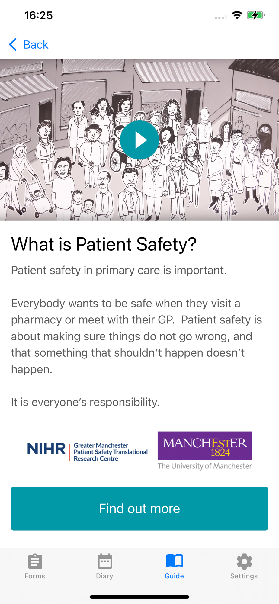 This app has been developed by the NIHR Greater Manchester Patient Safety Translational Research Centre. We have co-developed this guide with a lot of stakeholder involvement and engagement activities with patients, carers, members of the public, GPs and pharmacists. The guide aims to support patients and carers to be more actively involved in their patient safety in primary care which is a key national and international priority for patient safety and care. It is also available as a paper booklet, and a website (https://www.patientsafetyguide.org/).