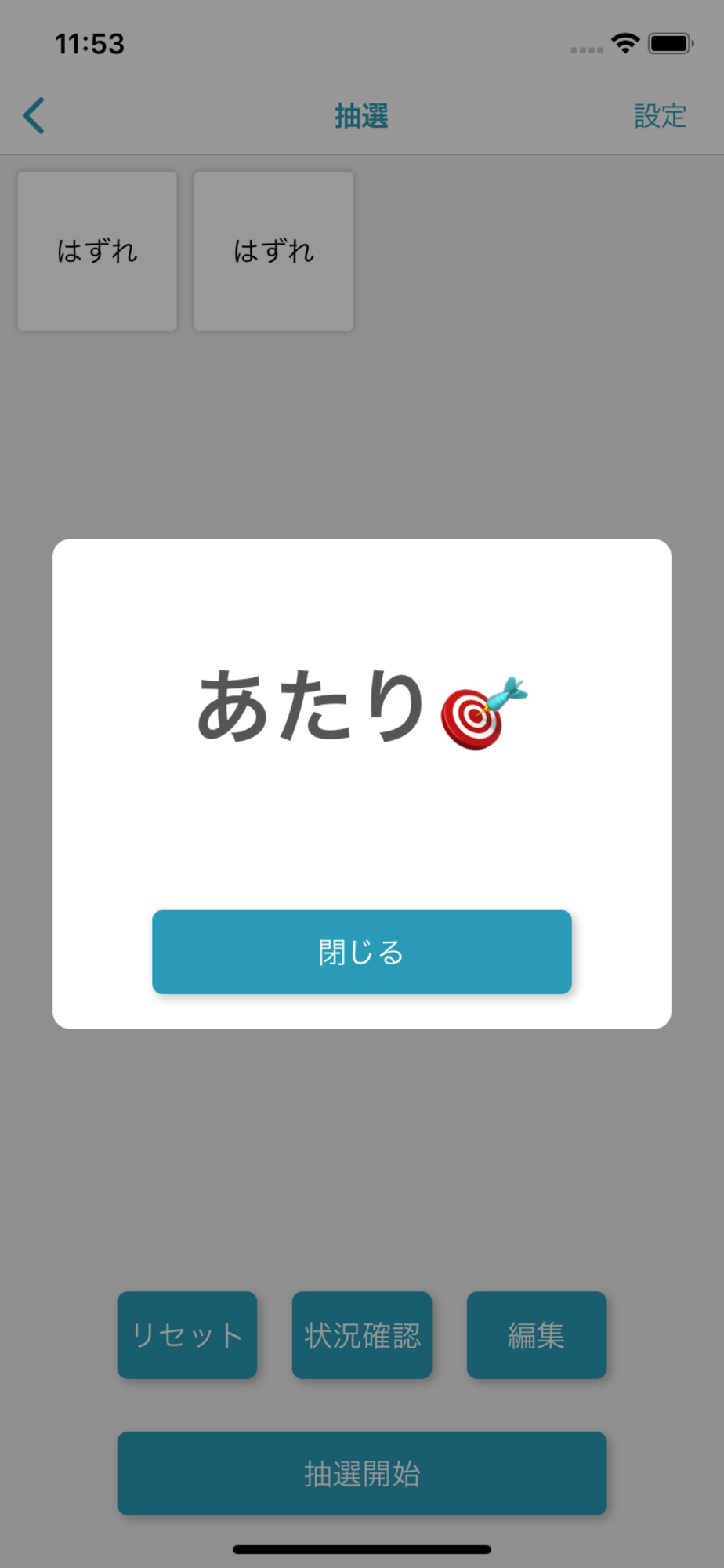 ③ランダム抽選の結果が表示されます。残った要素で再抽選可能です。