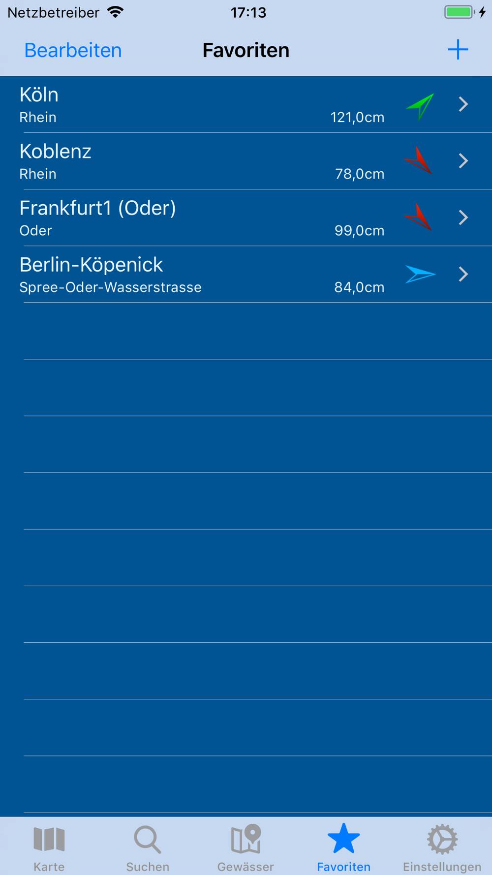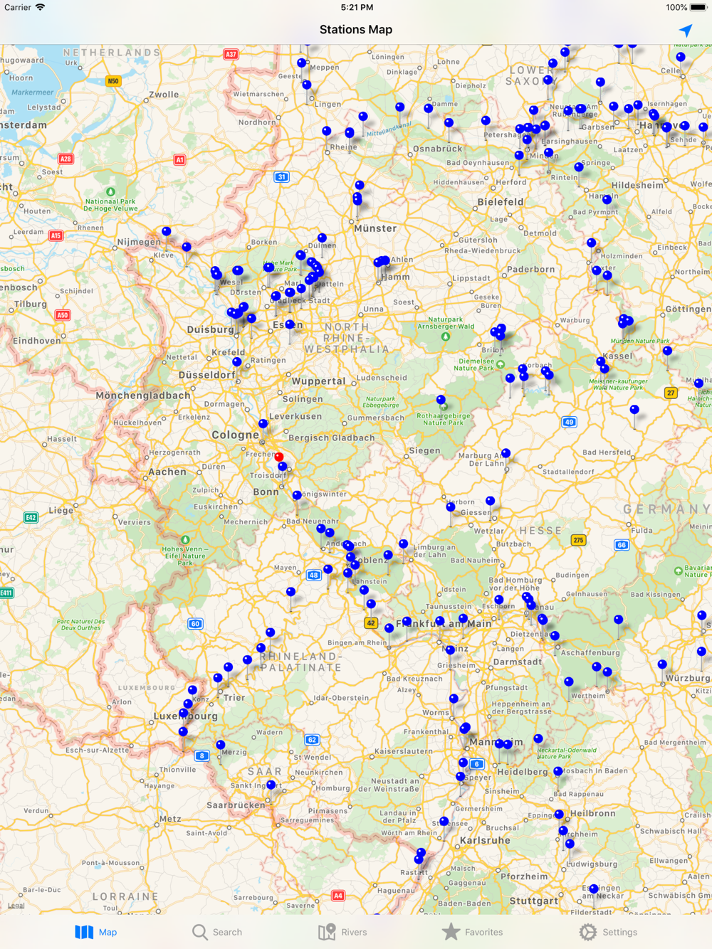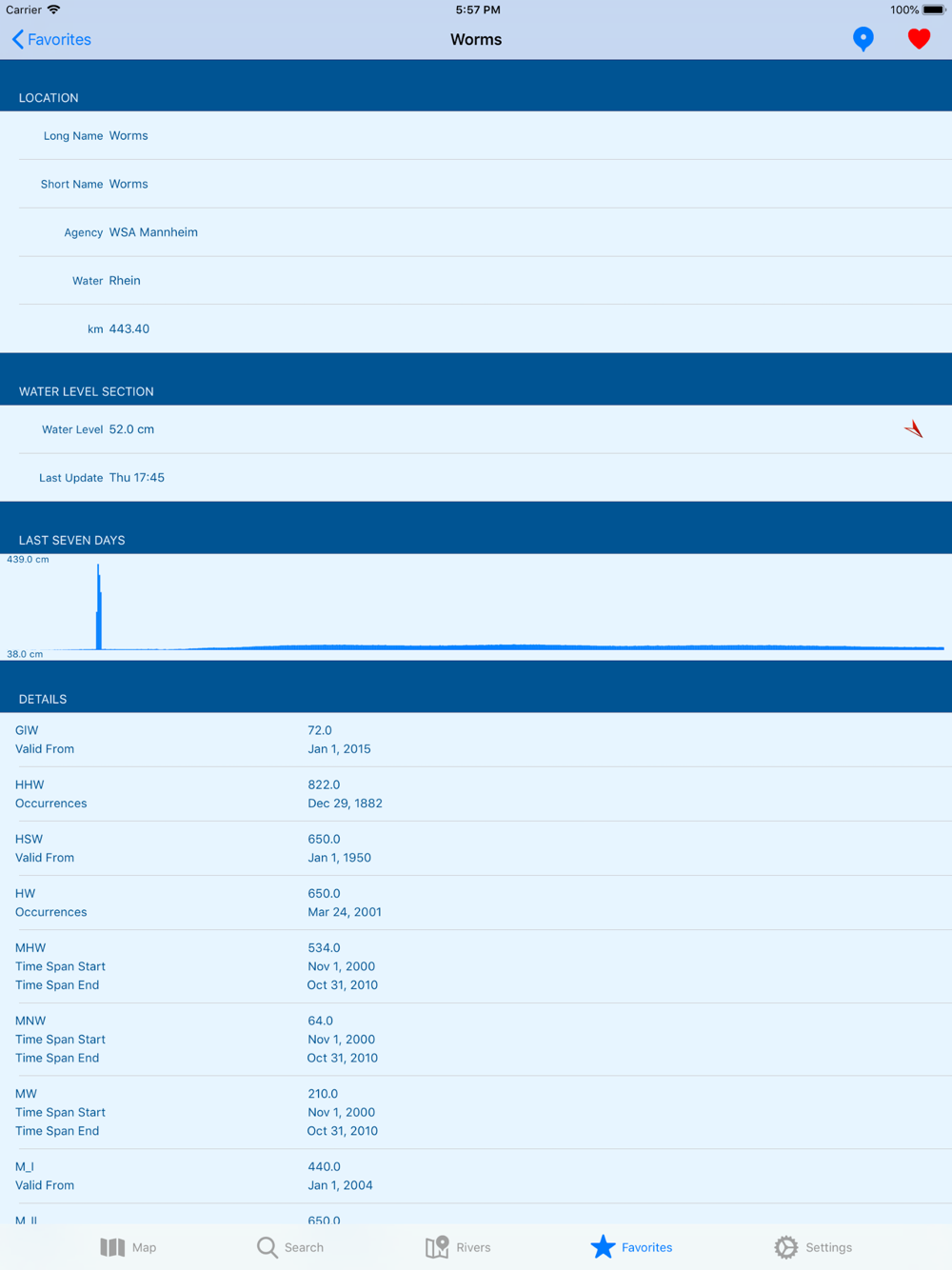 With this App you can query all water levels of german navigable waters. You can use a map , listings by waters or free text search.