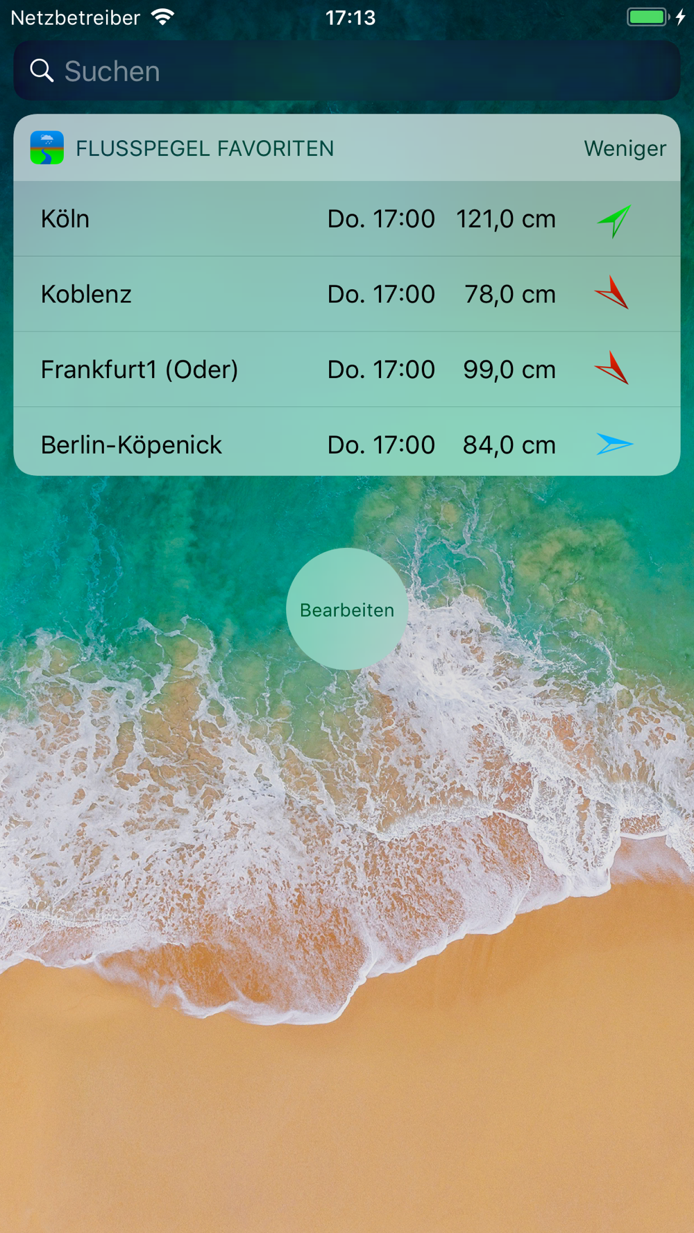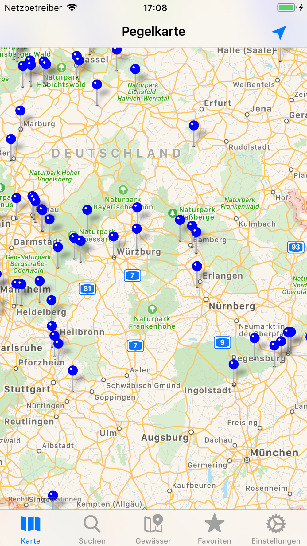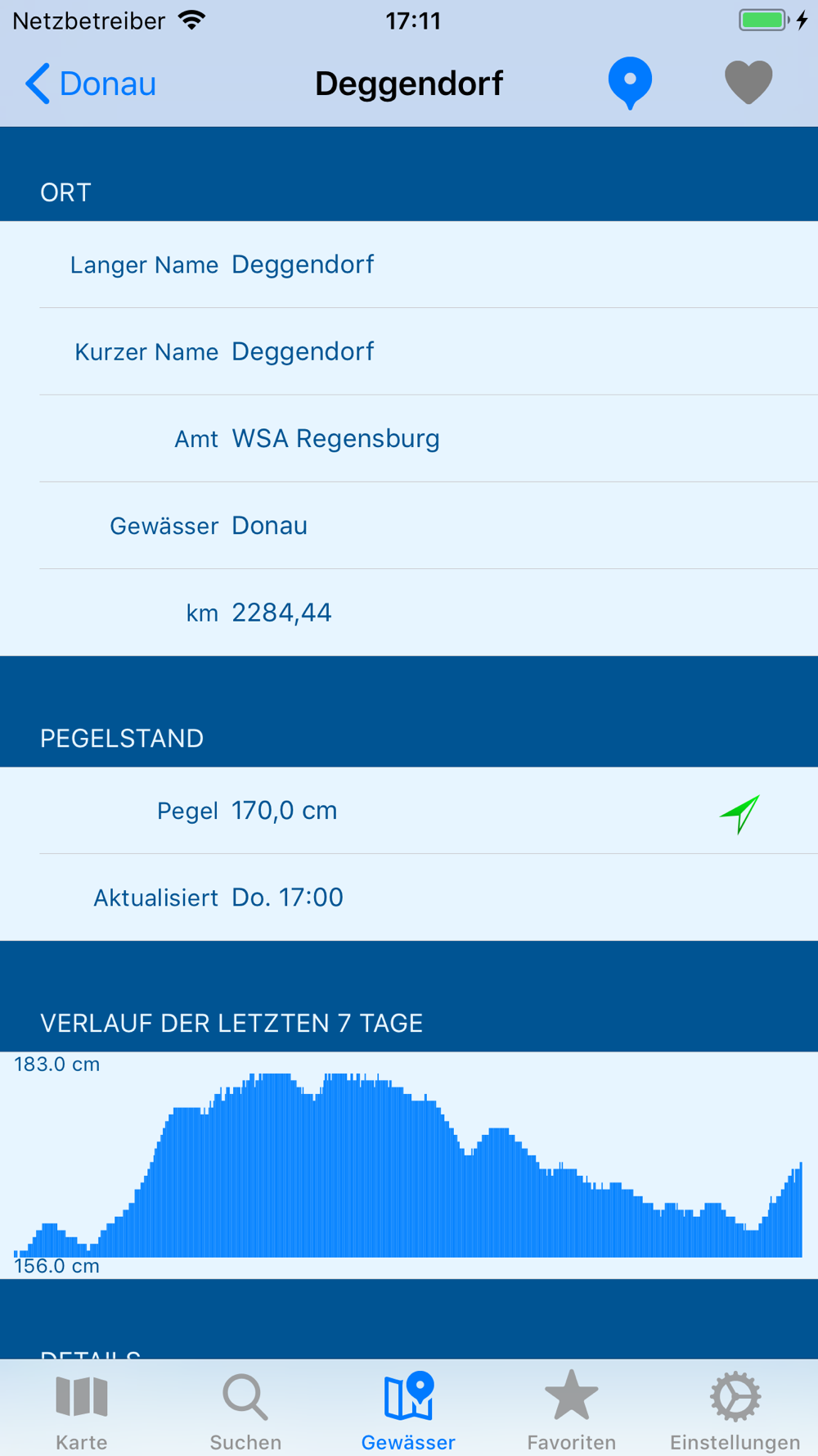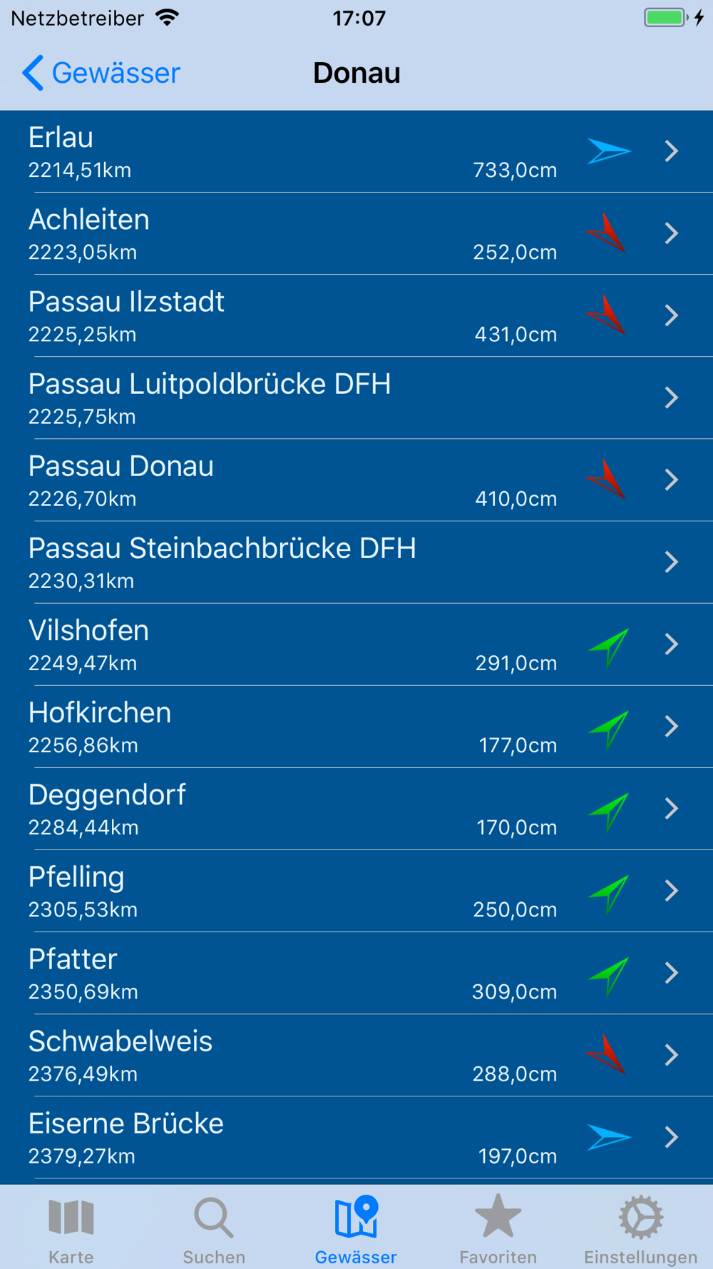 With this App you can query all water levels of german navigable waters. You can use a map , listings by waters or free text search.
