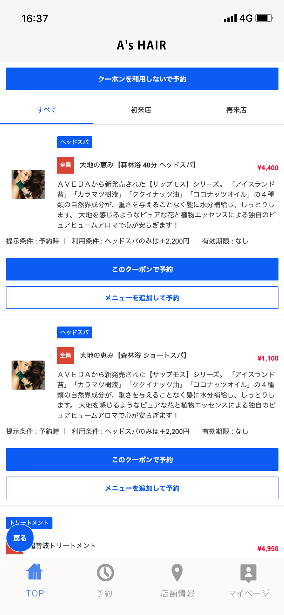 お得なクーポンが配信されます。ネット予約時にクーポン利用での予約も可能なので来店時もスムーズに施術頂けます。