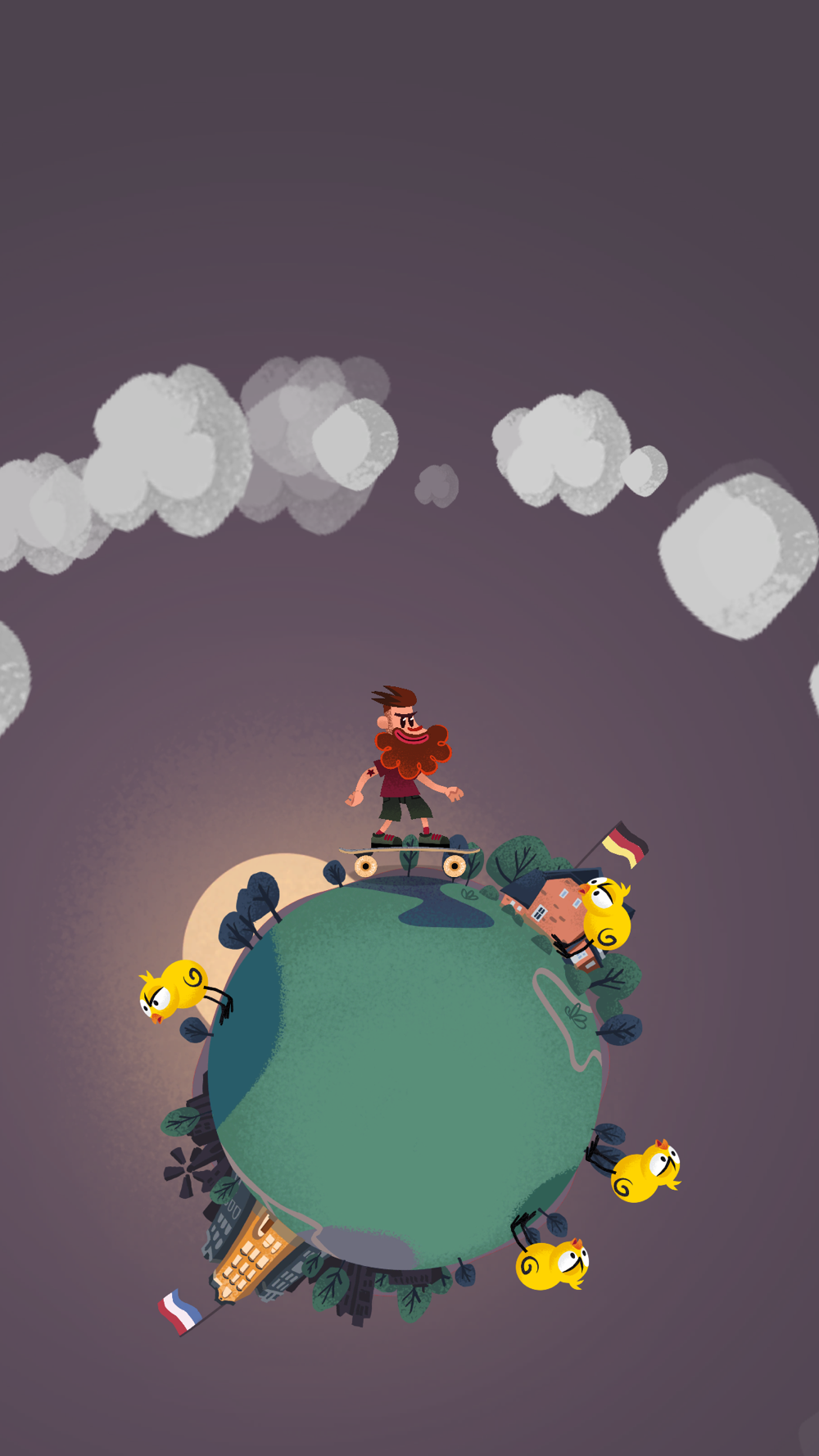 Use your skateboard and epic beard to fight evil chickens. Do kickflips, double jumps and unlock your amazing beard power to smash those evil birds off your little planet.