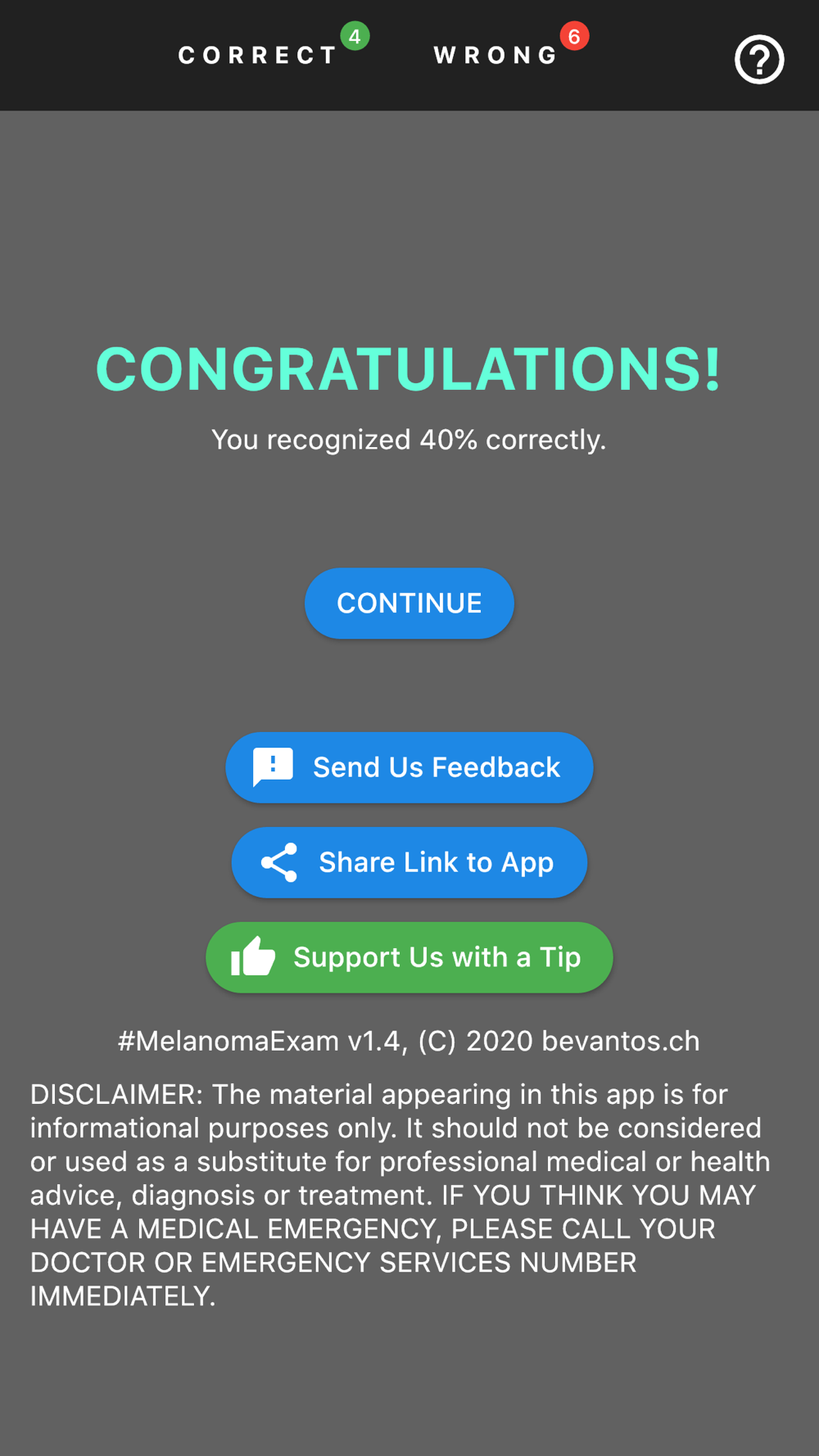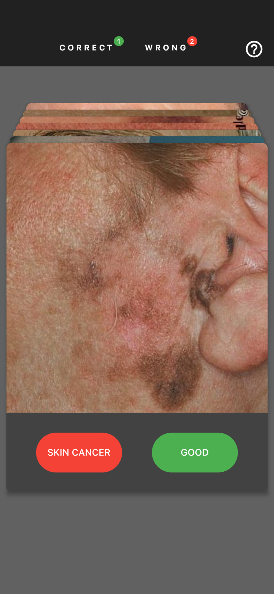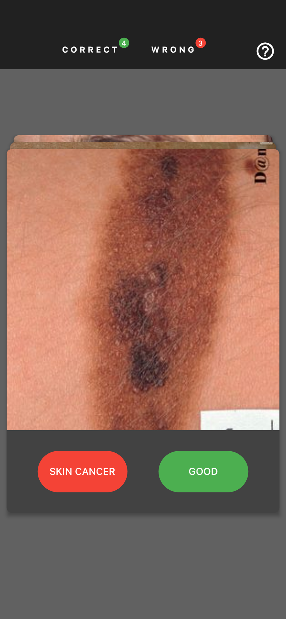 Do you recognize skin cancer when you see it? The goal of the #MelanomaExam app is to raise awareness of skin cancer. Just click the button or swipe the card if you think the image shows skin cancer and become sensitized for spotting potential skin cancer in the real world.